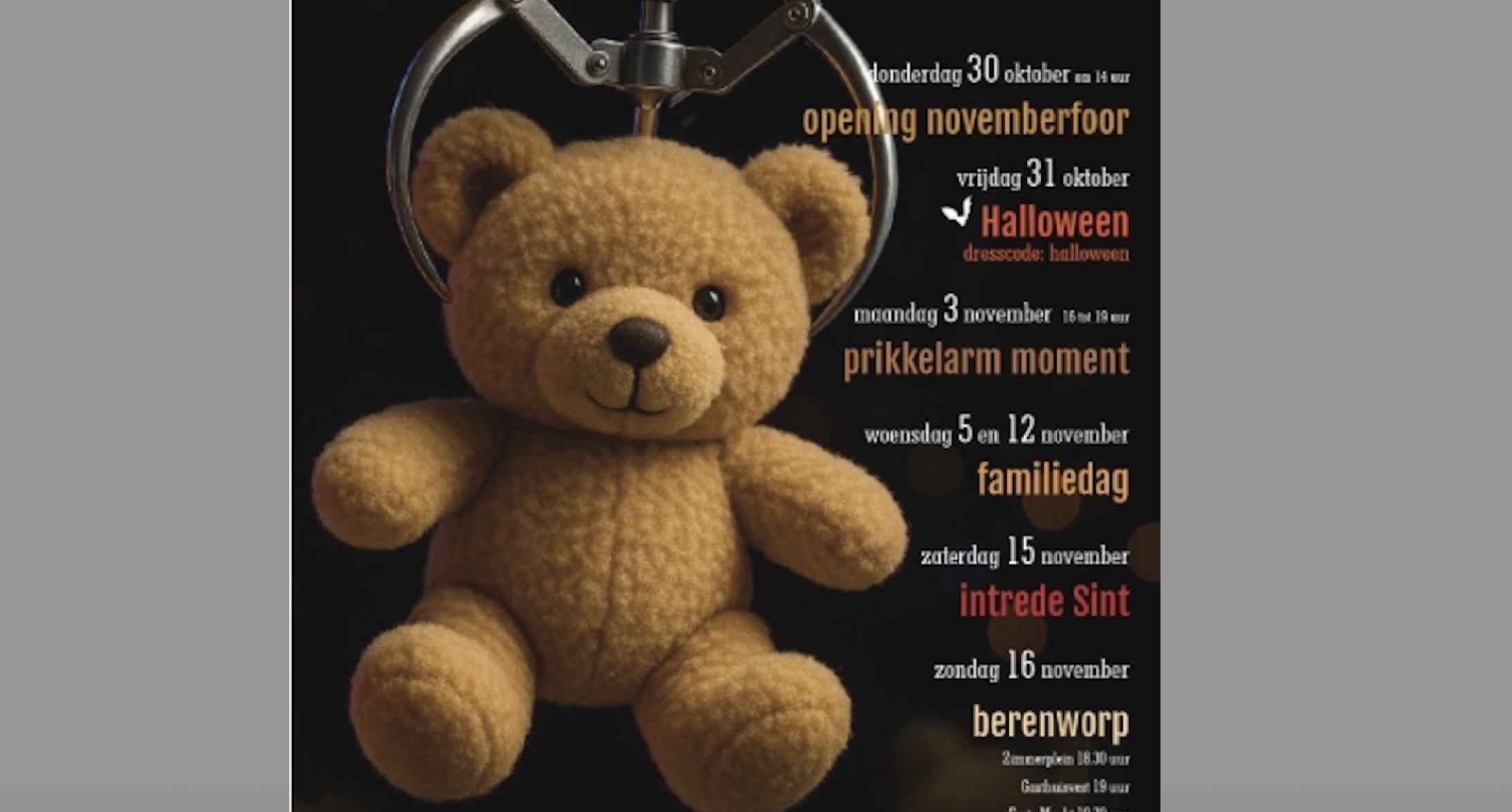 Woensdagen 5 en 12 november is iedereen welkom op de familiedag met animatie. Het laatste weekend van de Novemberfoor arriveert de Sint op zaterdagnamiddag 15 november. Zondag 16 november vindt de traditionele berenworp plaats op verschillende locaties.