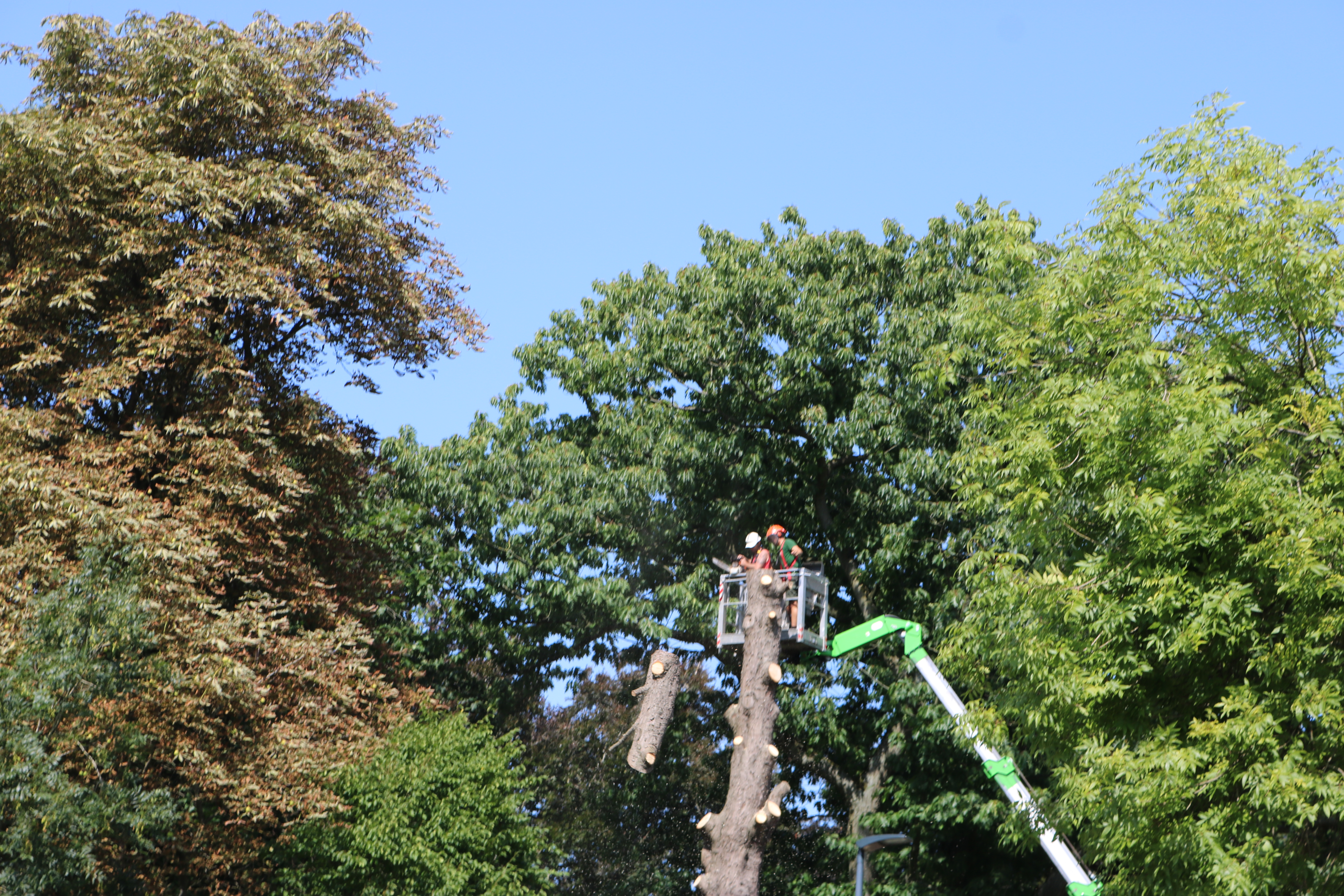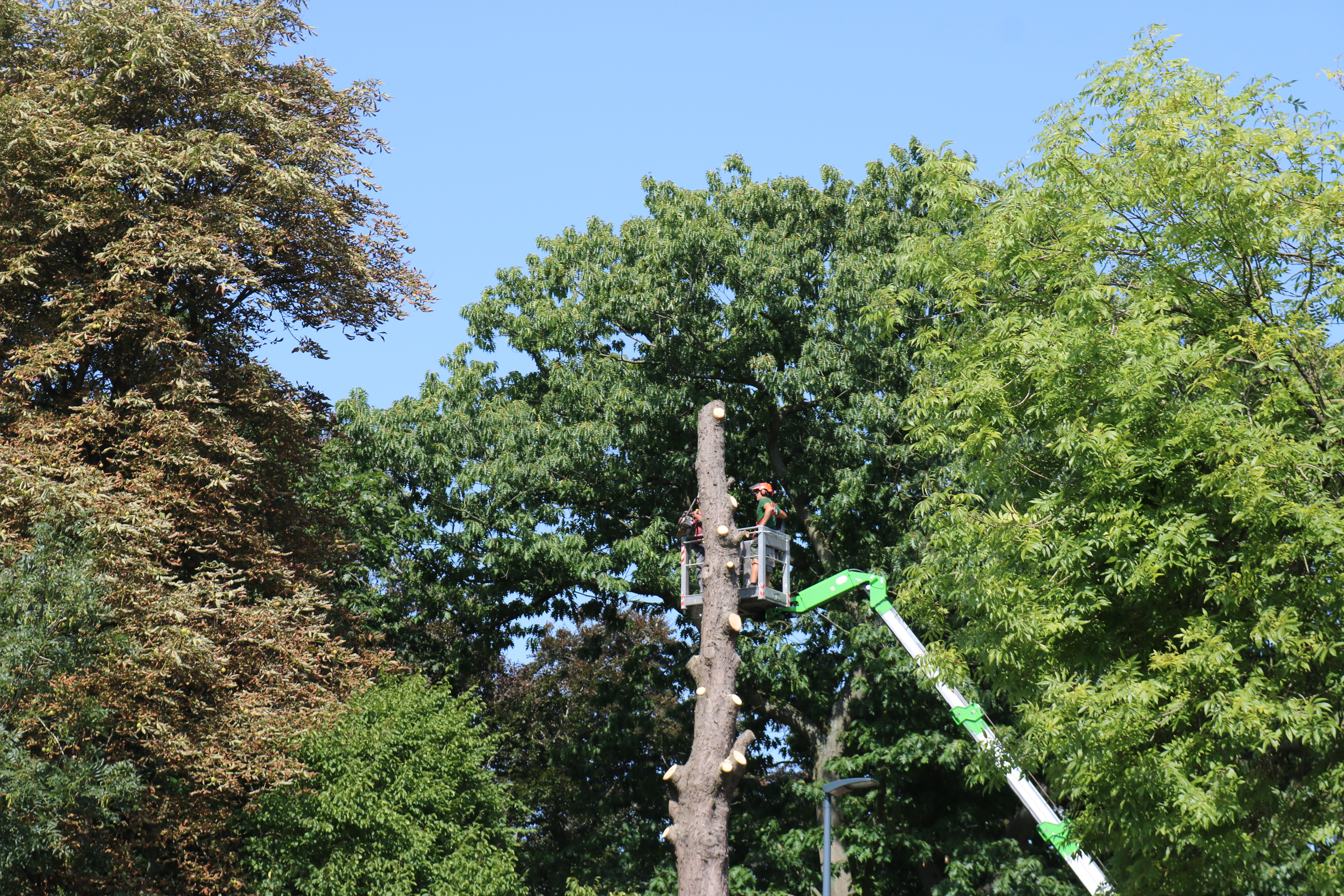 Het reusachtige exemplaar op de Davidsvest ter hoogte van de H. Ritakapel dreigde om te vallen. Hij werd vandaag met hoogtewerker vakkundig geveld door de brandweer en de groendienst van de stad.