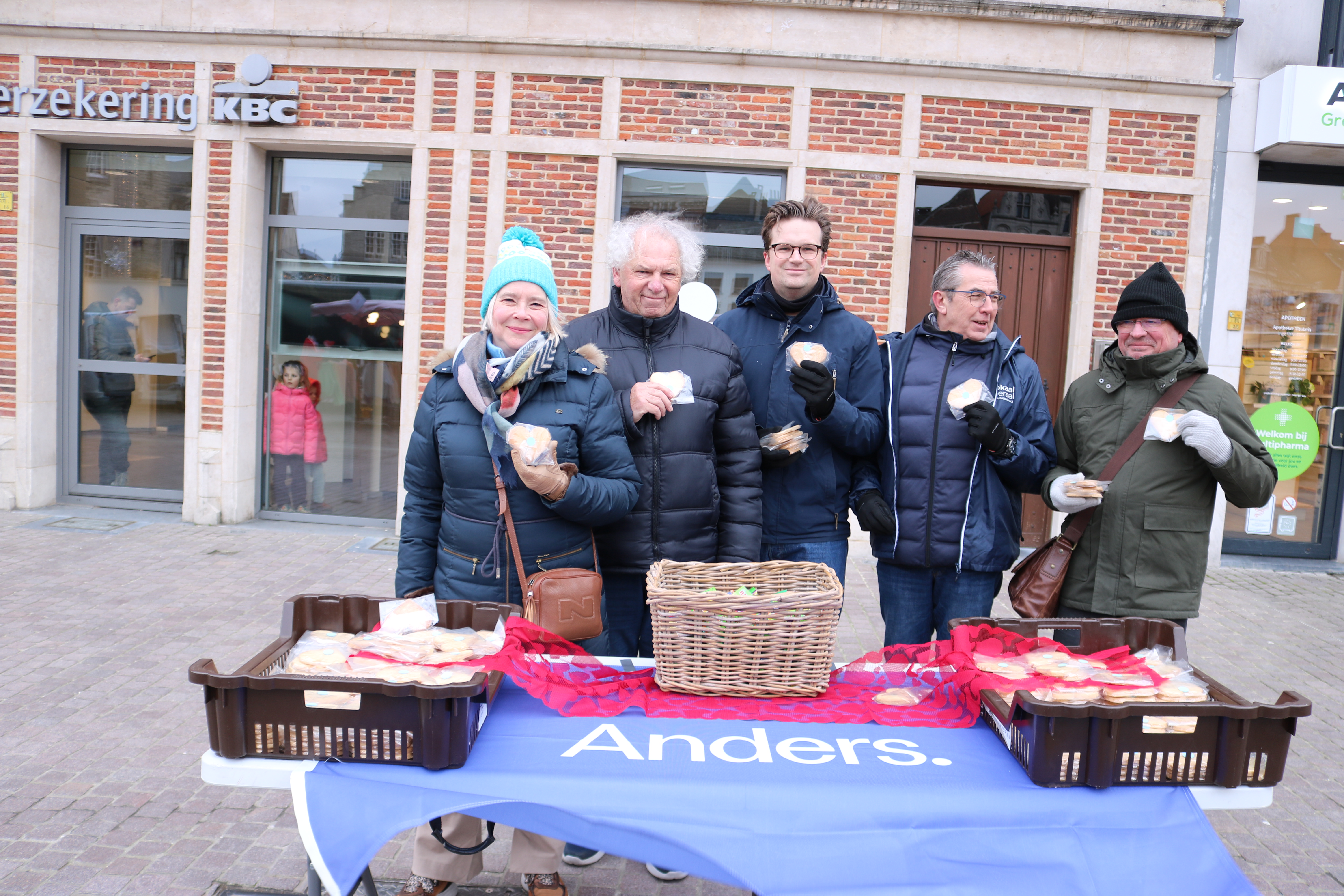 Speciaal voor Valentijn trakteerden ze de marktbezoekers op een „hartelijke” versnapering, mét de herkenbare blauwe bol: de eyecatcher van onze nieuwe beweging Anders.Lier-Koningshooikt.