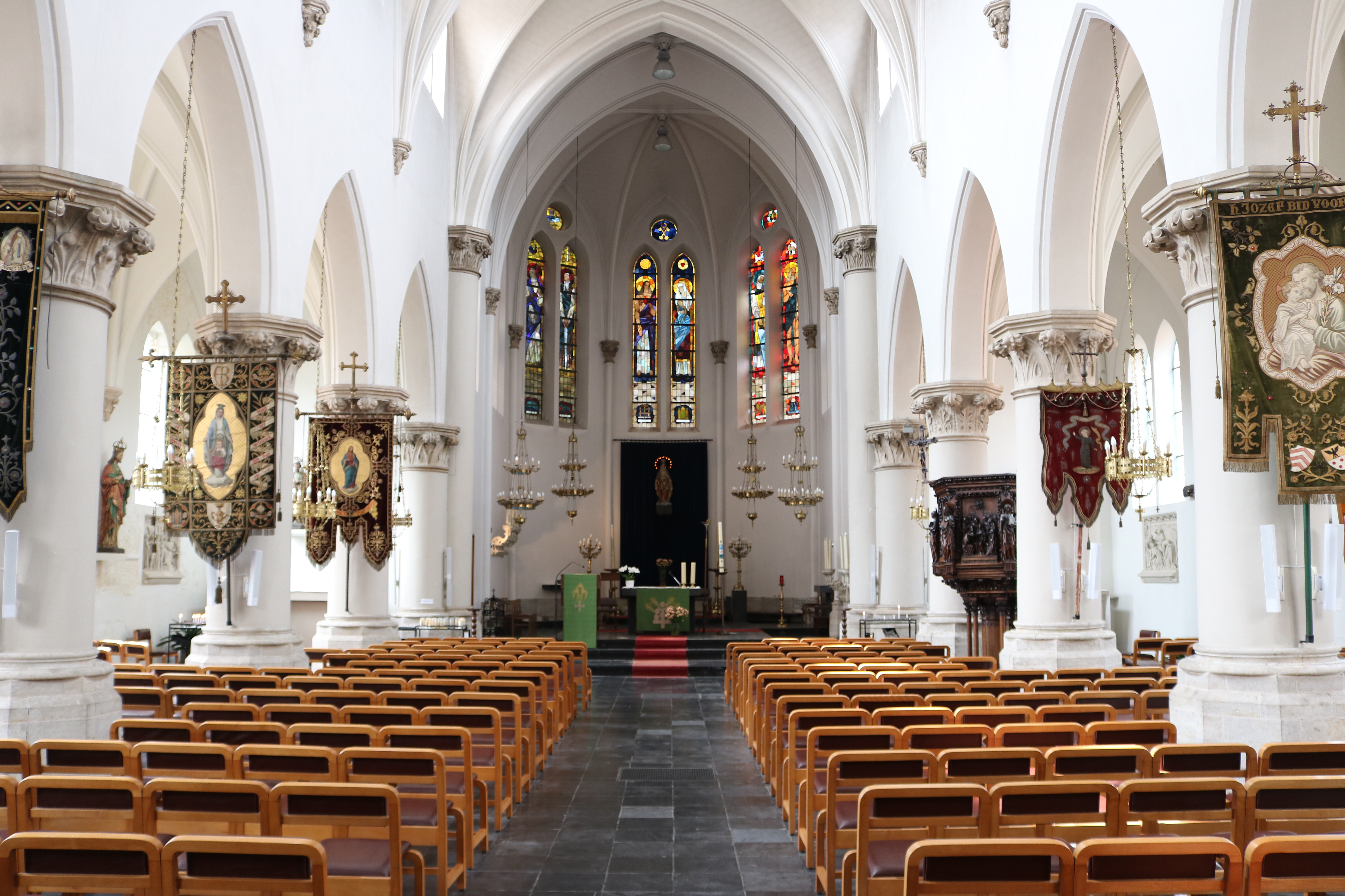 De Kerkraad Sint-Jozef en Sint-Bernardus beschikt over zes mooie vaandels die al vele jaren de kerk sieren.