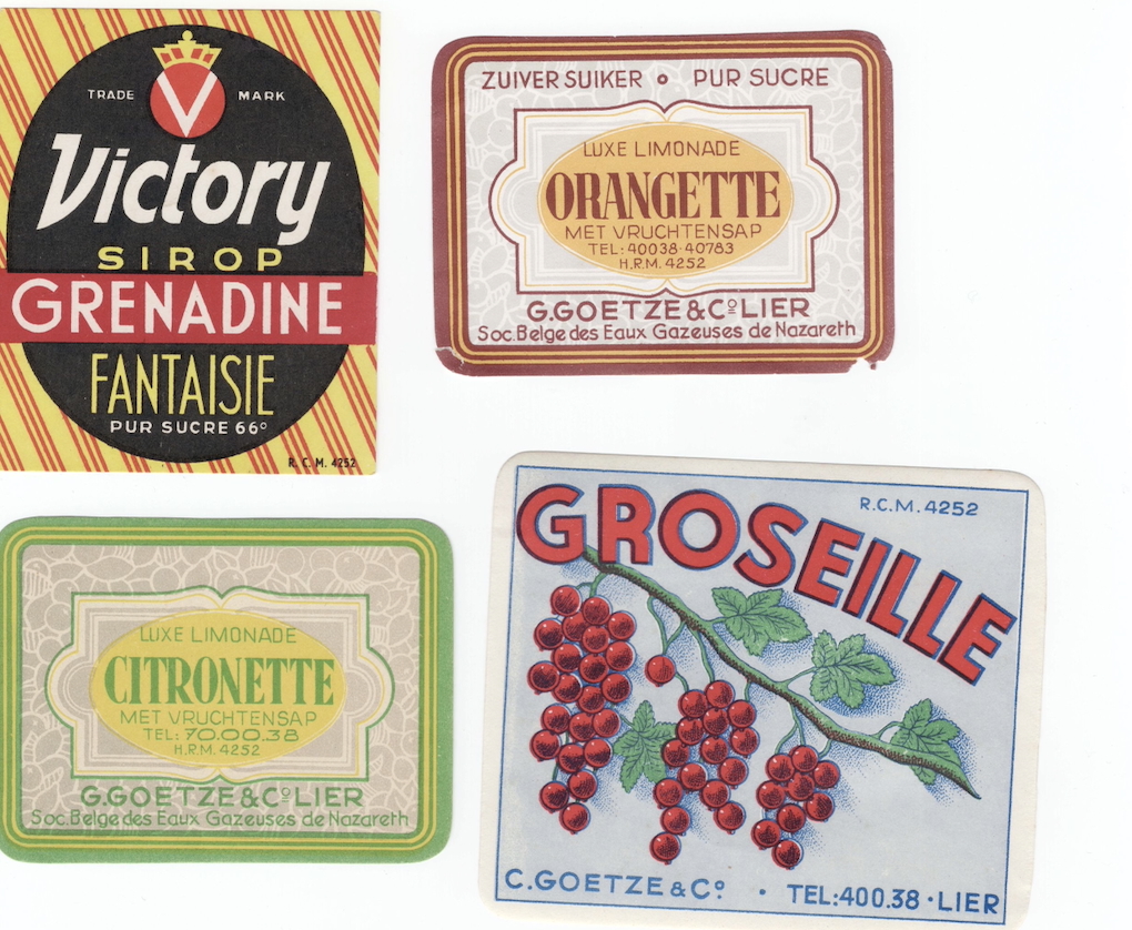 Het gaat om de etiketten van Citronette, Eau de l’Abbaye, Eau de Nazareth, Groseille, Haply Tonic, Orangette en Victory sirop.