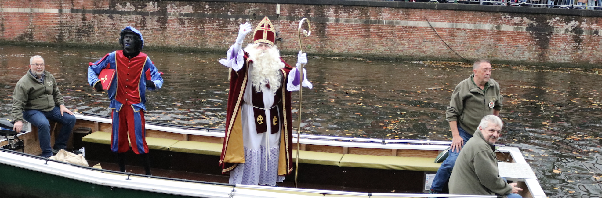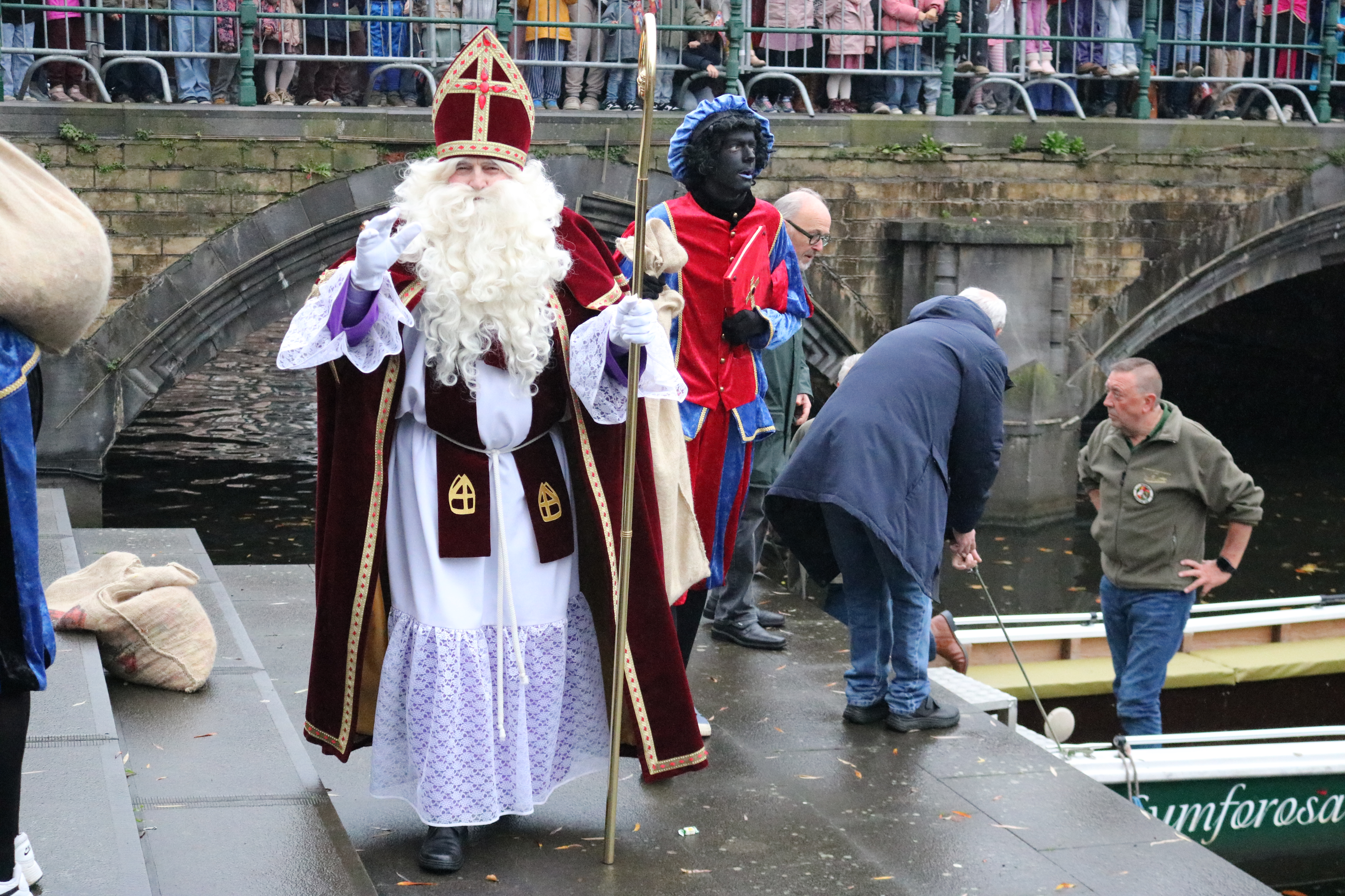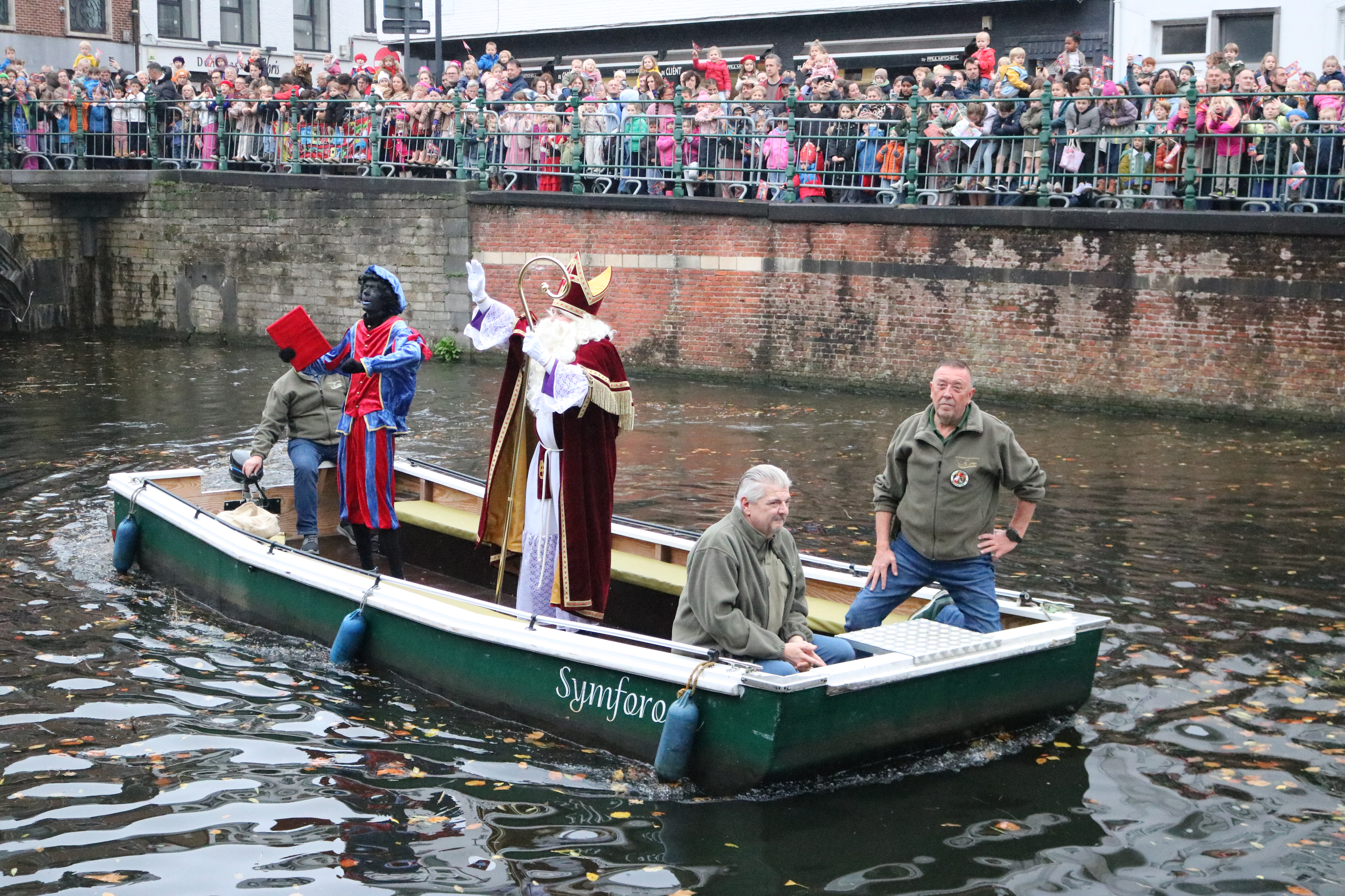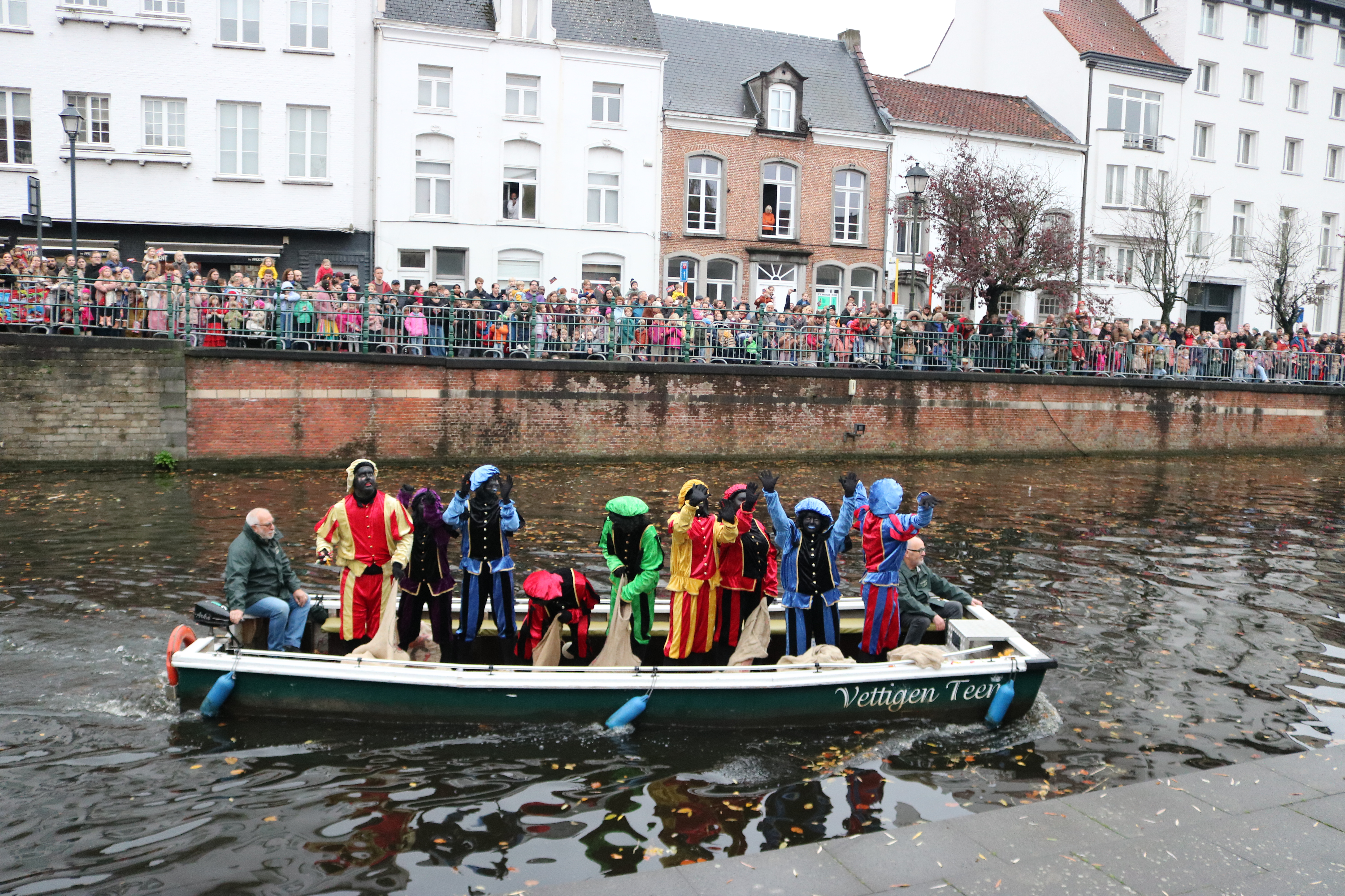 De Sint en zijn gevolg kwamen, begeleid door de druk gesticulerende Pieten, op traditionele wijze aan per boot. Een tweetal authentieke platbodems van de Moedige Bootvissers bracht hen over de Nete tot aan de verlaagde kade van het Felix Timmermansplein. De oevers, met de Werf en de Hoge Brug als uitkijkposten, waren afgeladen vol.