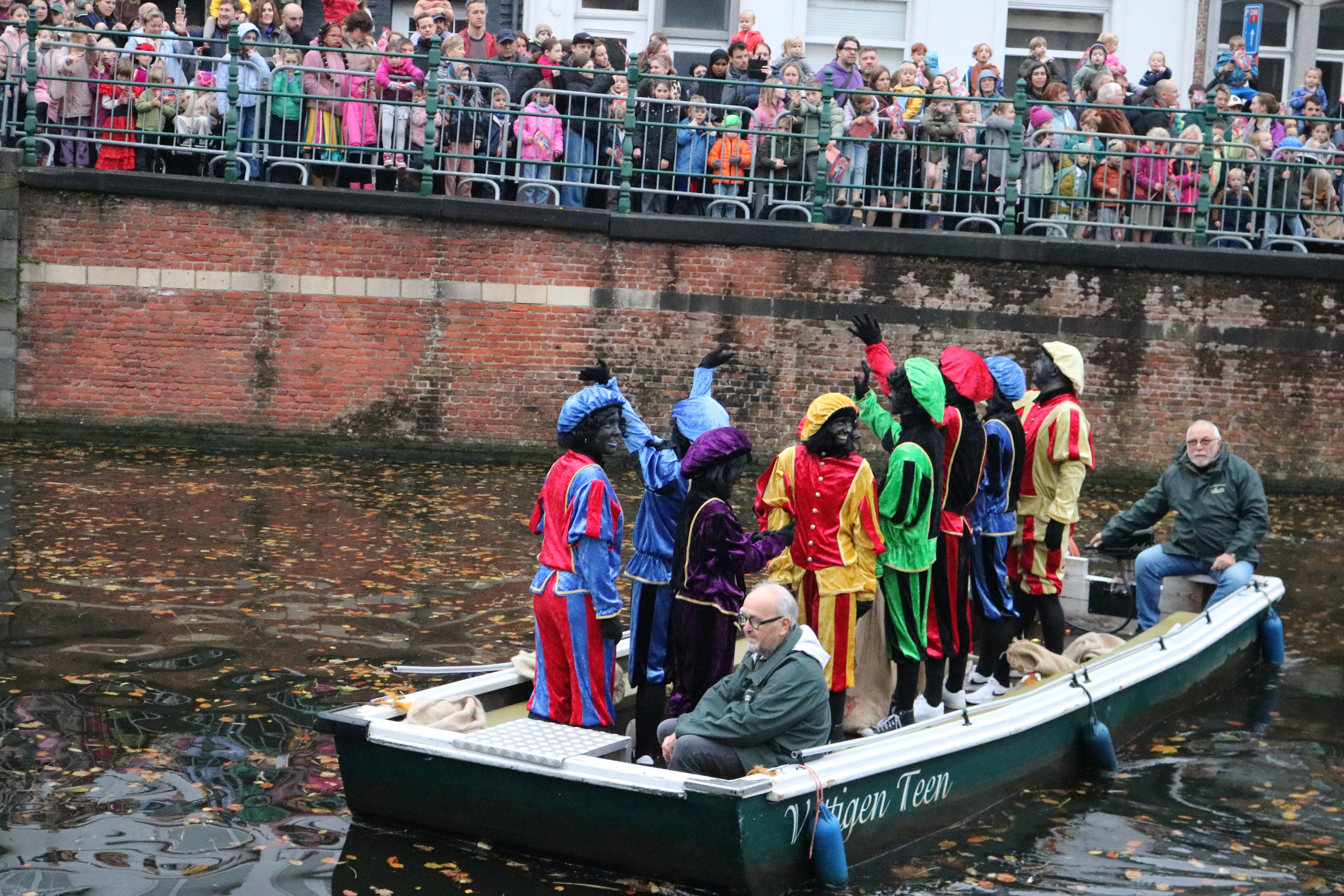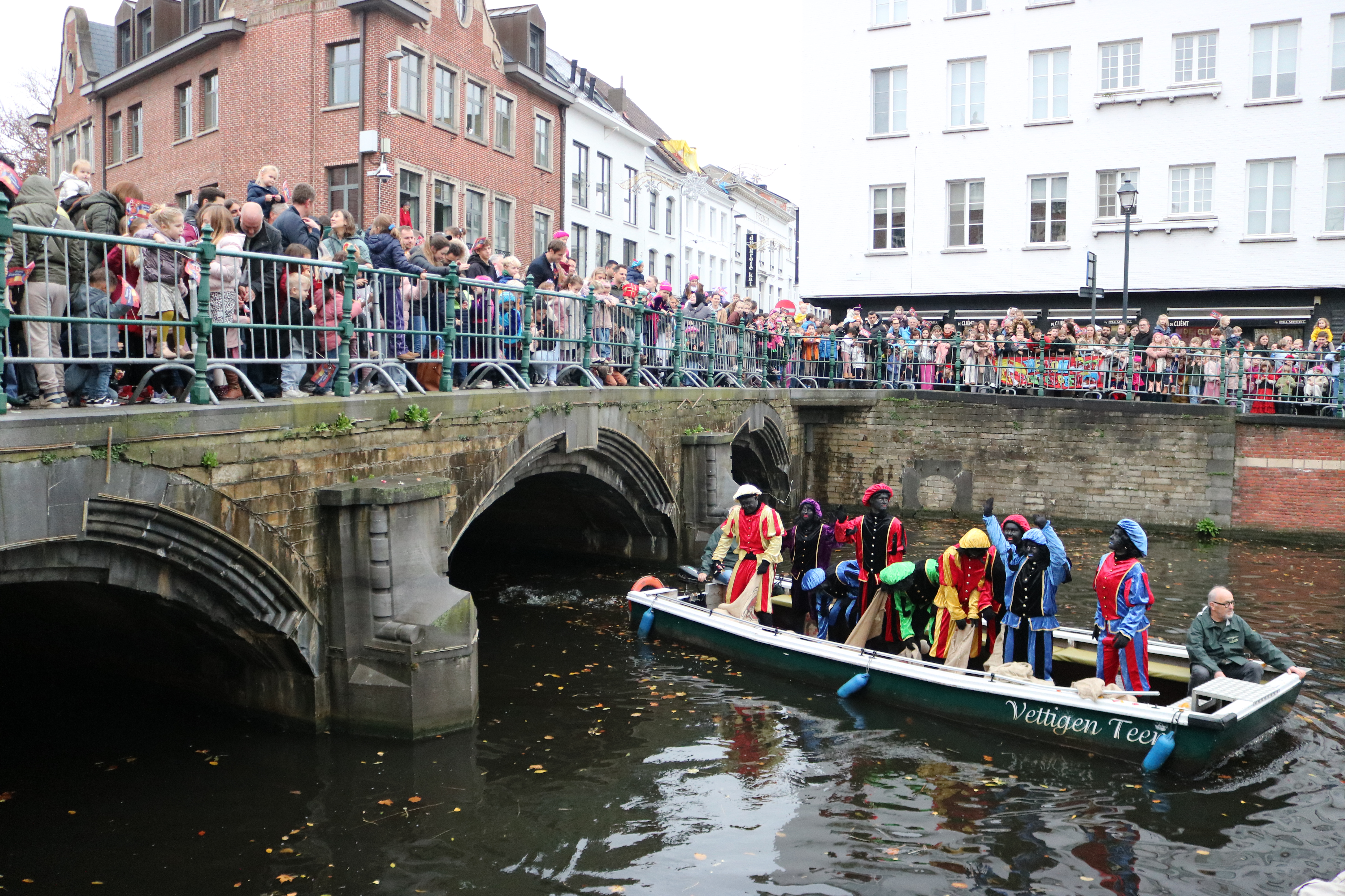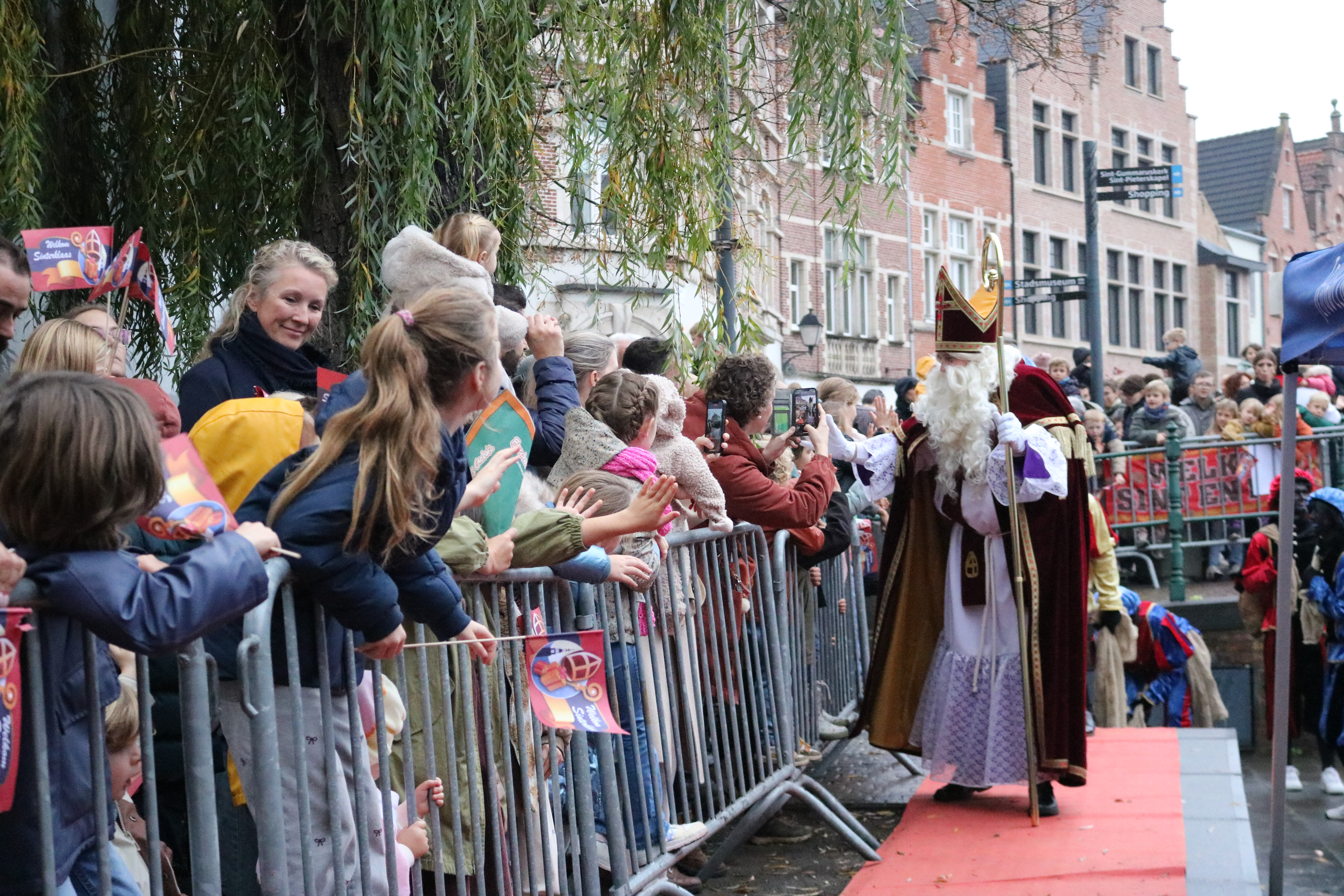 Omstuwd door de kinderen, ouders en grootouders, en op de vrolijke deuntjes van zijn Muziekpieten, vertrok de Sint vervolgens in stoet richting het stadhuis op de Grote Markt. De toegewijde Pieten zorgden er onderweg voor dat er een onophoudelijke regen van snoepjes neerkwam .