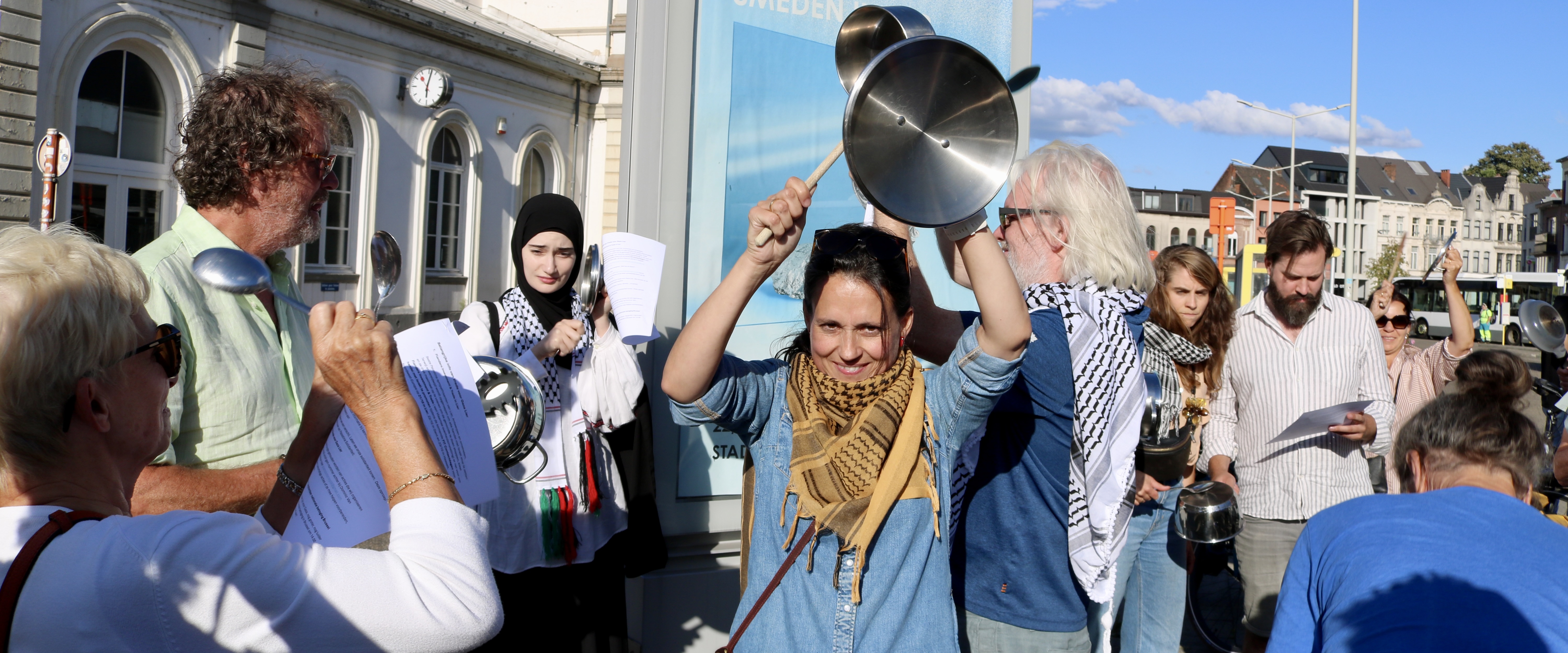Voor de vijfde week op rij verzamelden gisteren donderdag een groep Lierenaars stipt om 18 uur aan het station om door gekletter met potten en pannen aandacht te vragen voor de gruwelijke uithongering van de Palestijnen in Gaza . Ze willen niet meer wegkijken van het humanitair drama dat zich daar momenteel afspeelt.