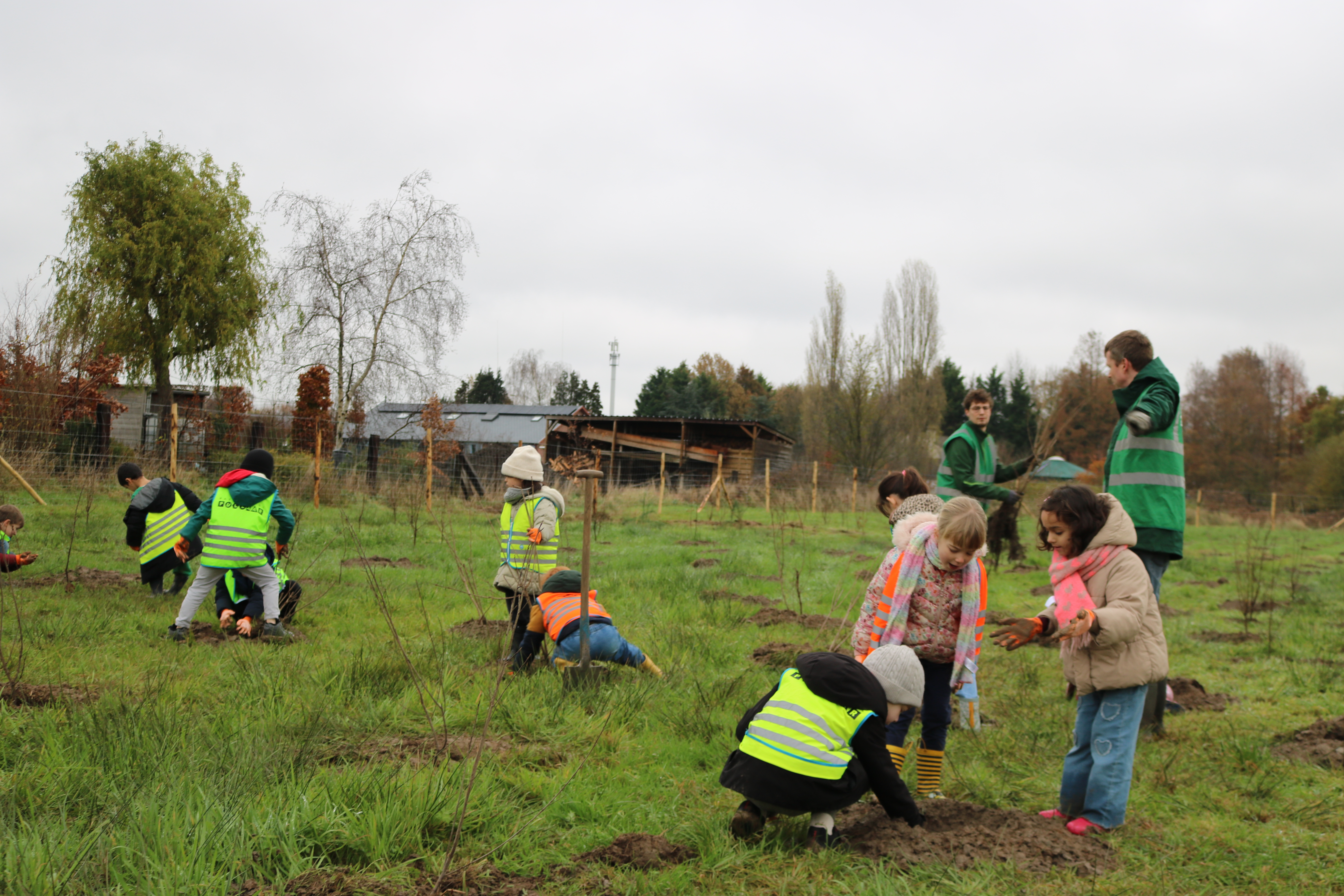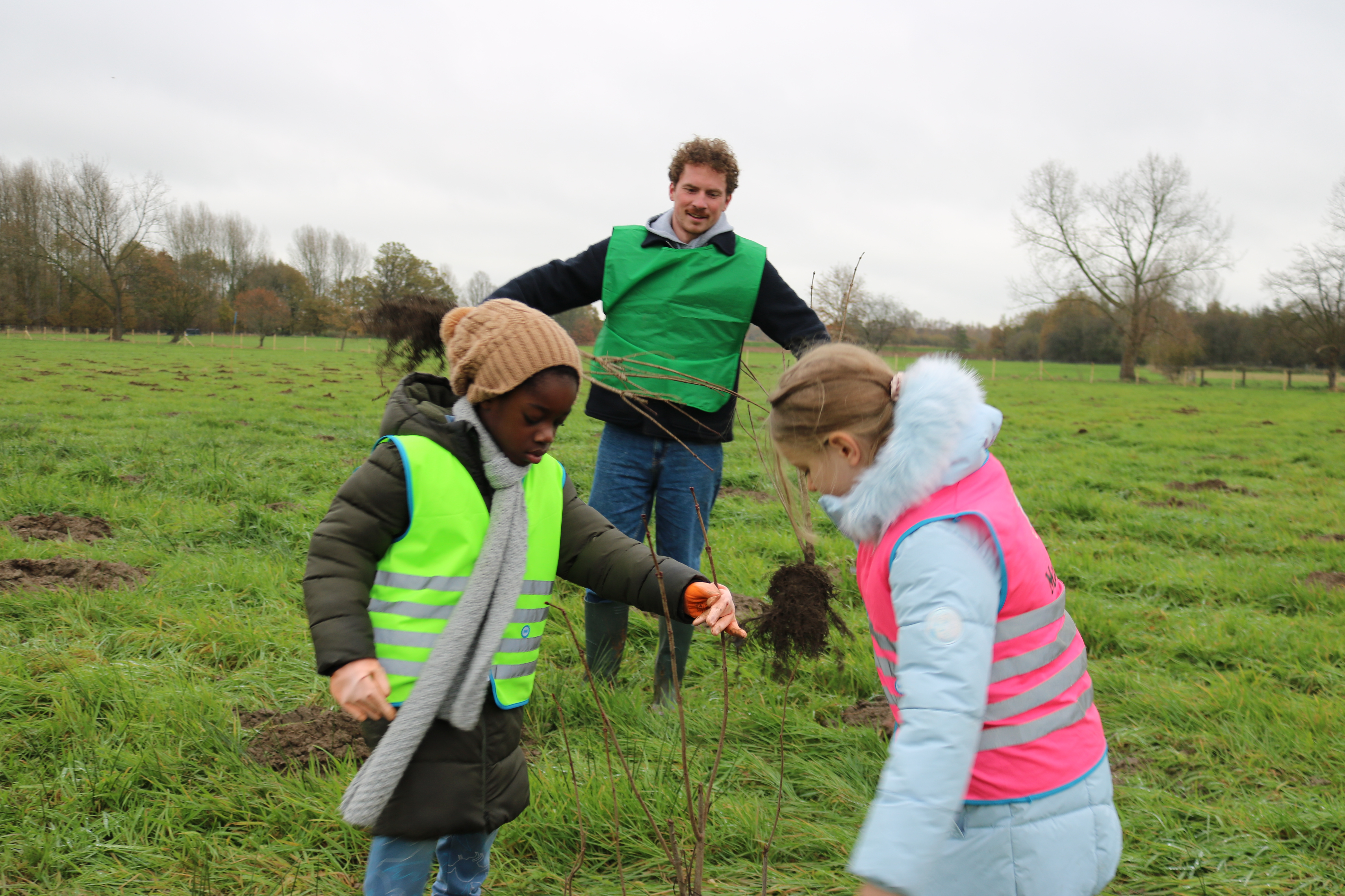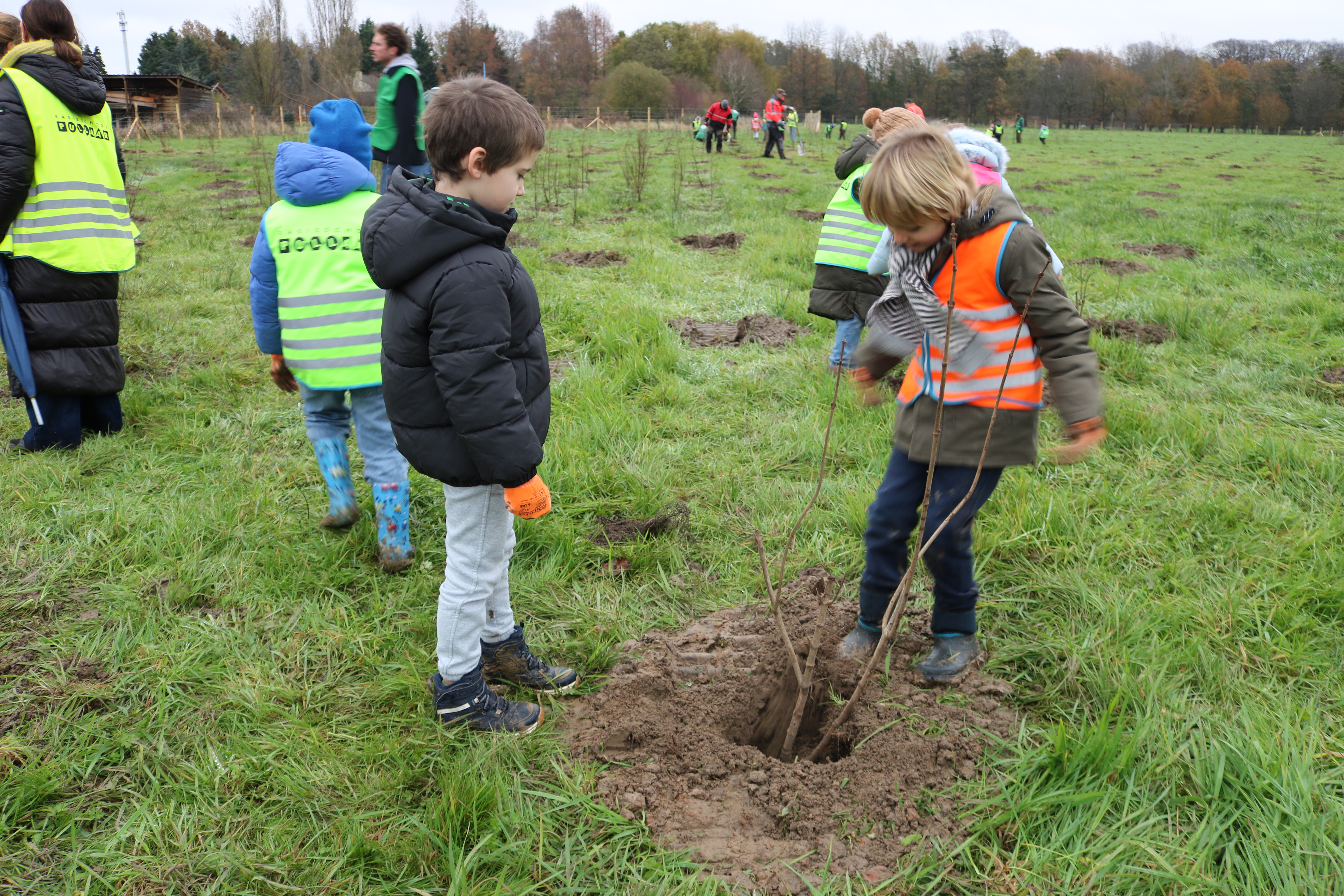 Leerlingen basisschool Pullaar helpen stad bij aanplanten bos