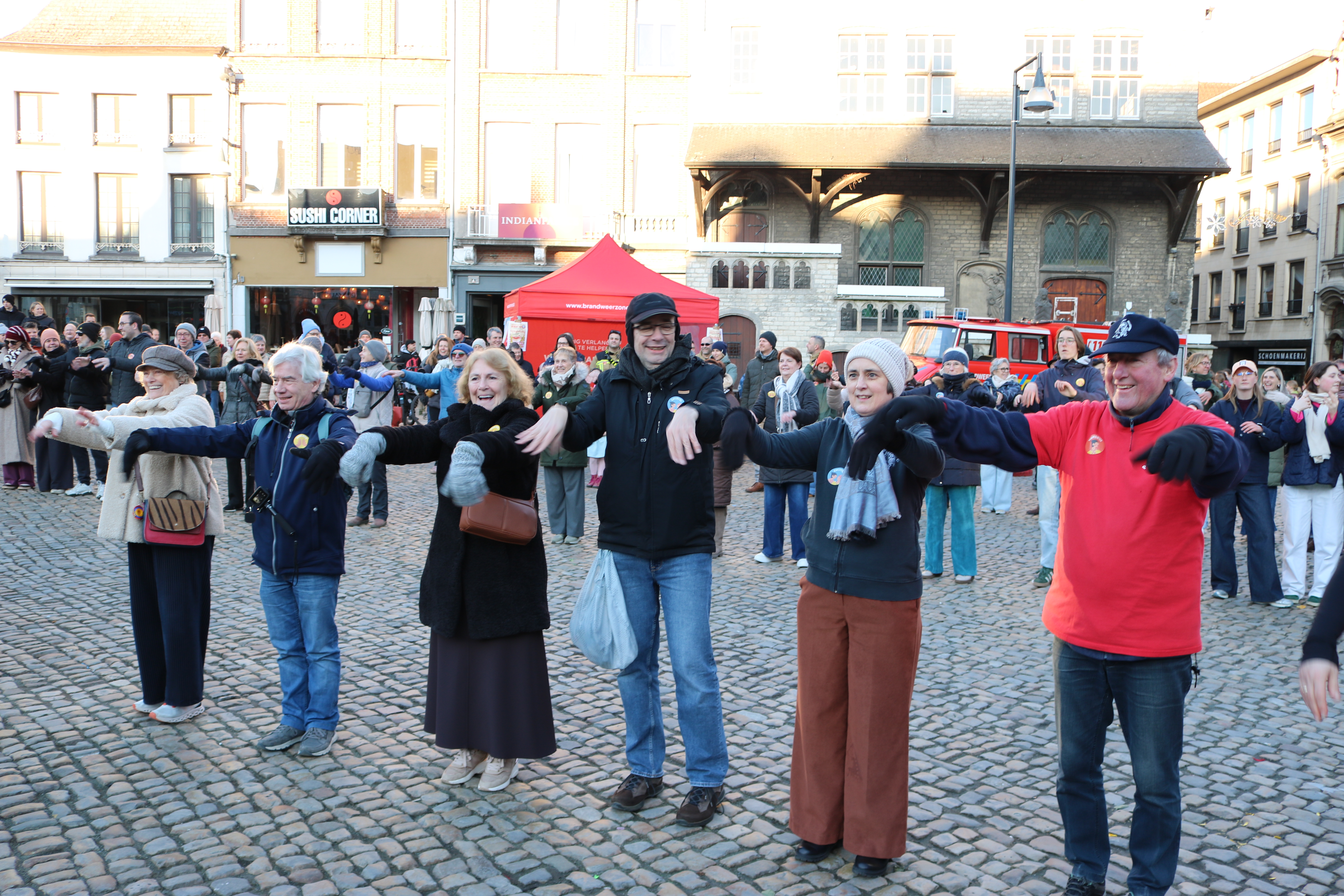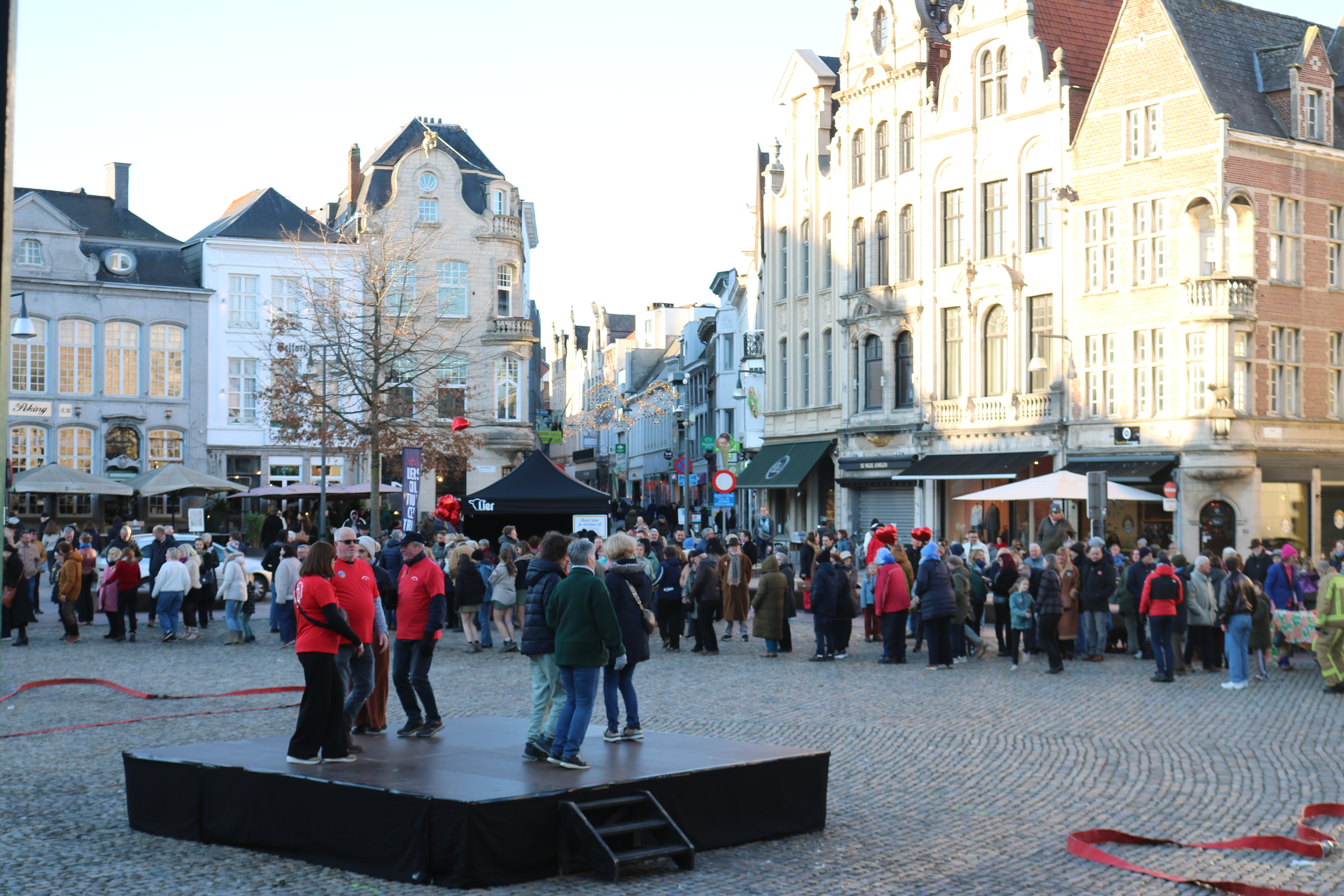 Wat in de jaren ’80 de officieuze ‘Tinder’ van de dansvloer was, werd door het Liers Cultuurcentrum in een modern, „2026-proof” jasje gestoken. Onder begeleiding van de Lierse volksdansverenigingen Volkskunstgroep Pallieterke en ‘De wereld een dansfeest’ werd de Grote Markt omgetoverd tot een bruisend volksdansbal.