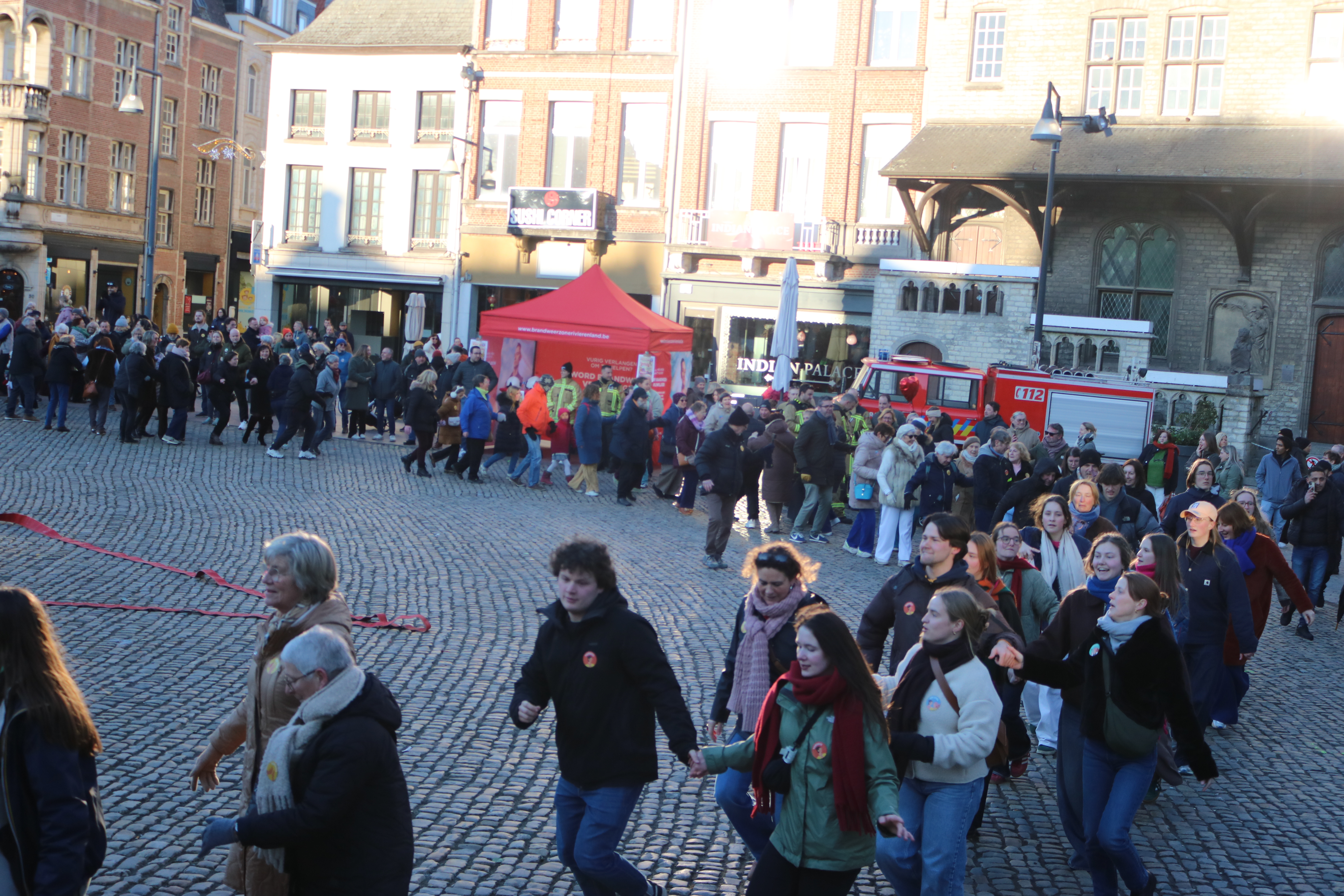 Hoewel de massale opkomst voor een gezonde dosis chaos zorgde — de Grote Markt was zelfs te klein voor één enkele kring, waardoor er in drie concentrische cirkels gedanst werd — was de sfeer opperbest. De officiële deurwaarder telde exact 512 deelnemers, ruim drie keer zoveel als het oude record uit Mechelen.