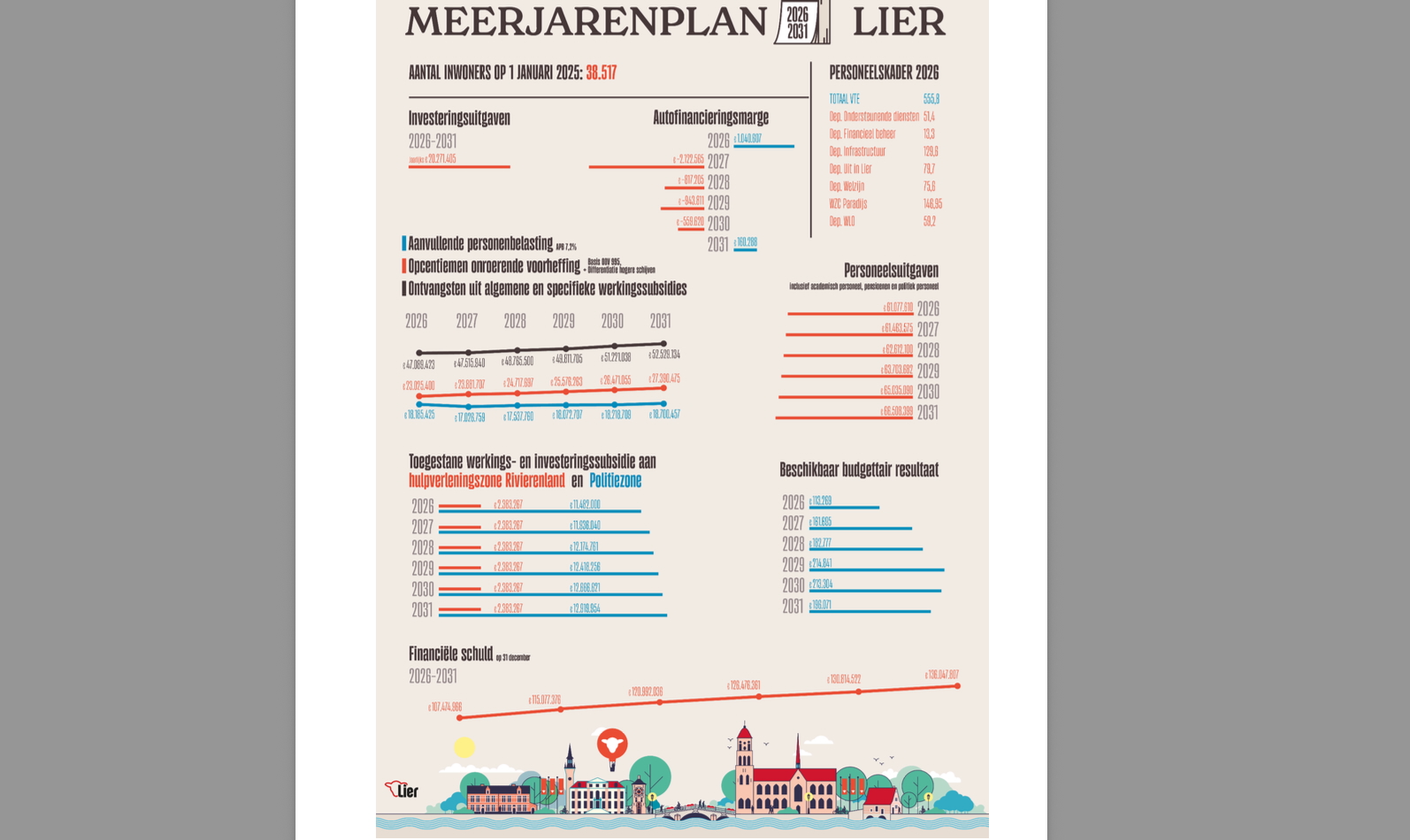 Lier kampt met een structureel tekort door een combinatie van sterk oplopende uitgaven en terugvallende inkomsten, wat leidt tot de noodzaak om jaarlijks bijna 8 miljoen euro te besparen op exploitatie.