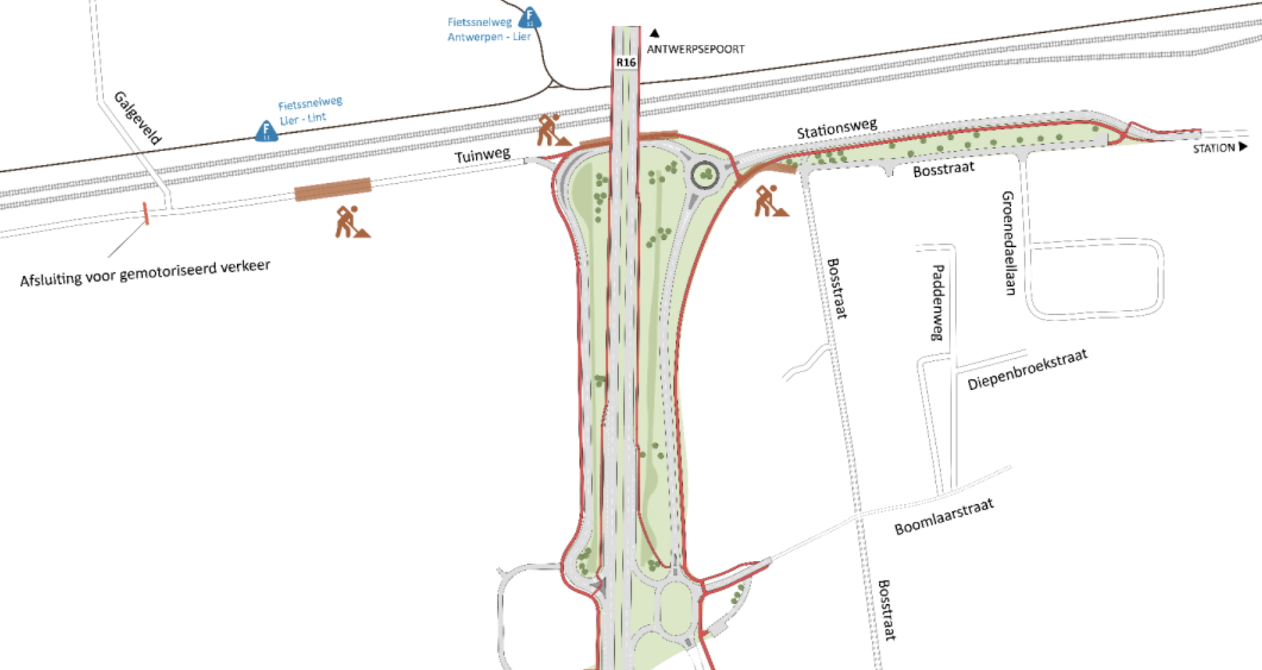 AWV herstelt de vluchtheuvel in de Tuinweg tussen Galgeveld en de bretel aan de buitenkant van de Ring (R16). Ter hoogte van de werken is de Tuinweg onderbroken.