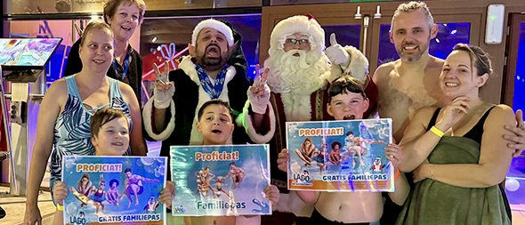 De jonge winnaars Sayfedinne (9) en Lowie (10) waren dolgelukkig met hun hoofdprijs. „De rand van het bad was ijskoud, maar eenmaal in het water was het super,” glunderde Lowie. Na de actie konden alle deelnemers zich weer opwarmen tijdens de ‘Glow in the Dark’-party in het subtropisch zwemparadijs.