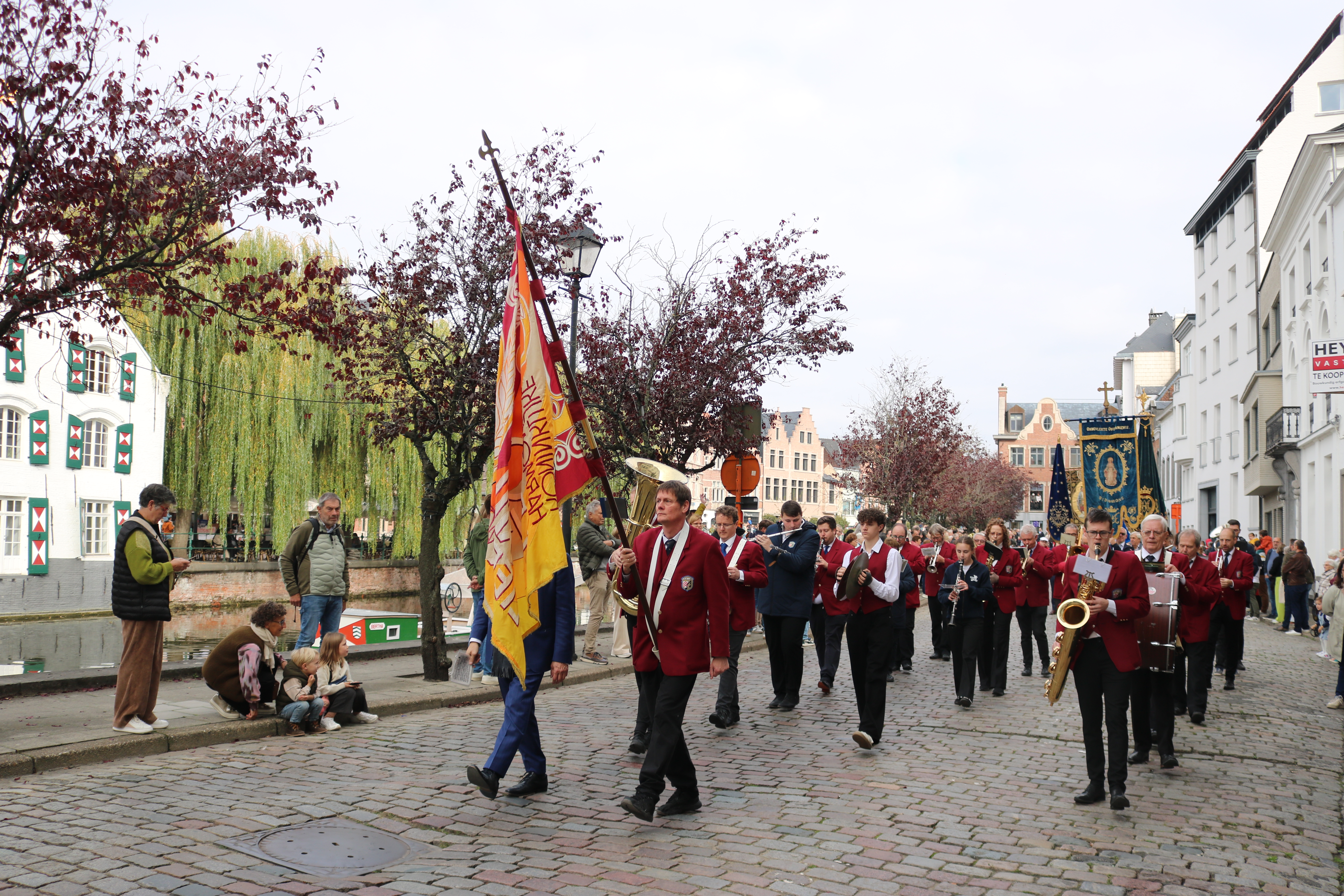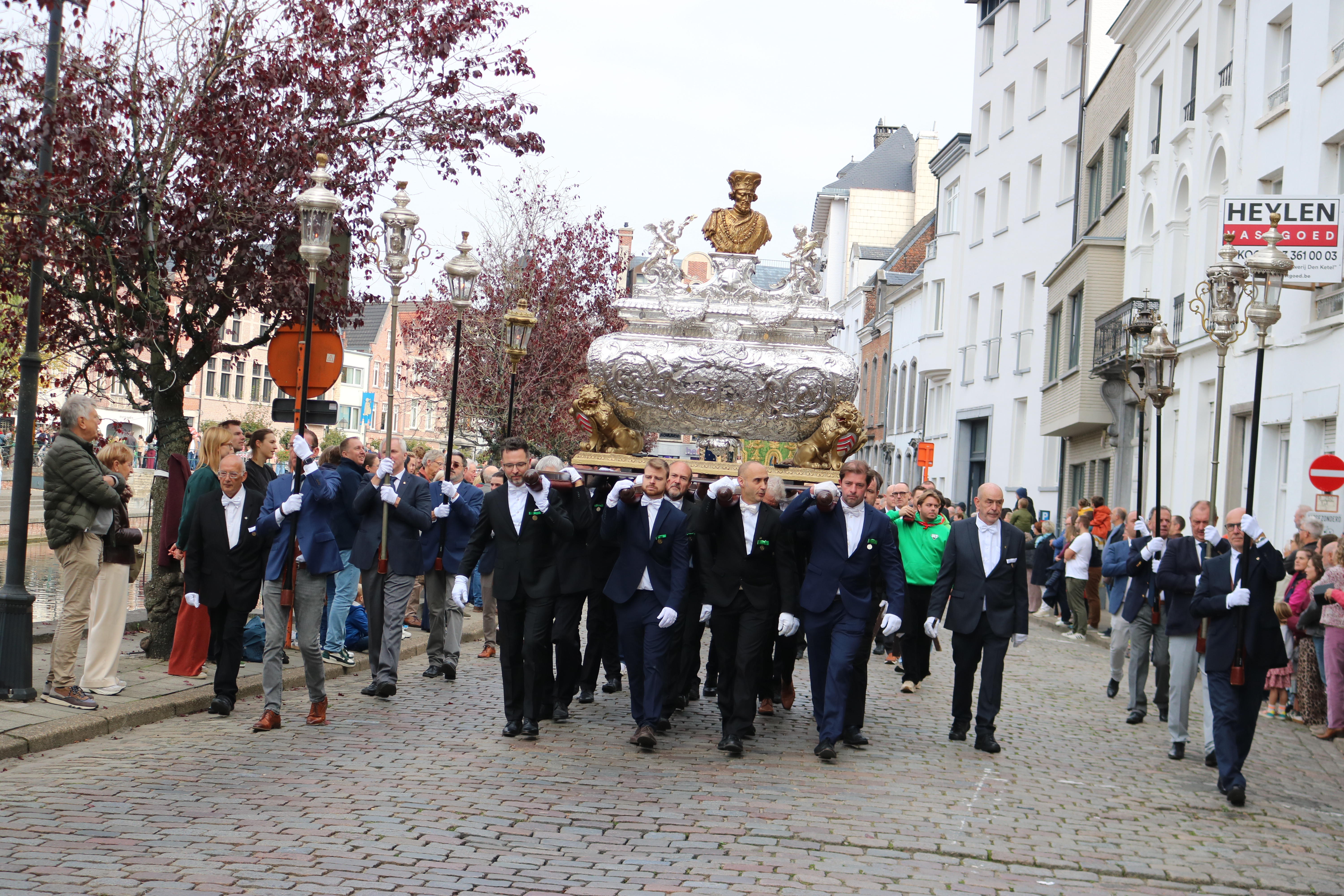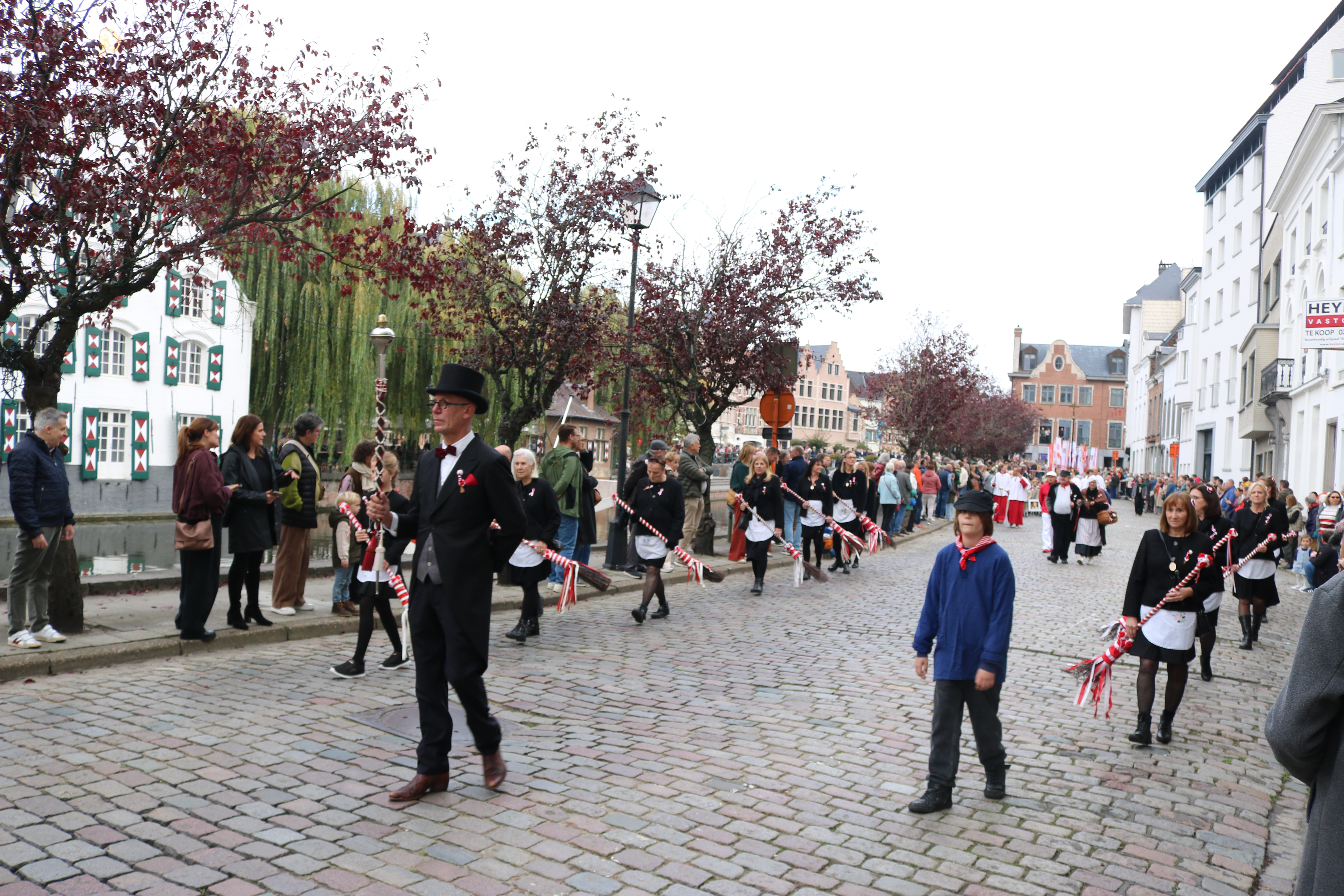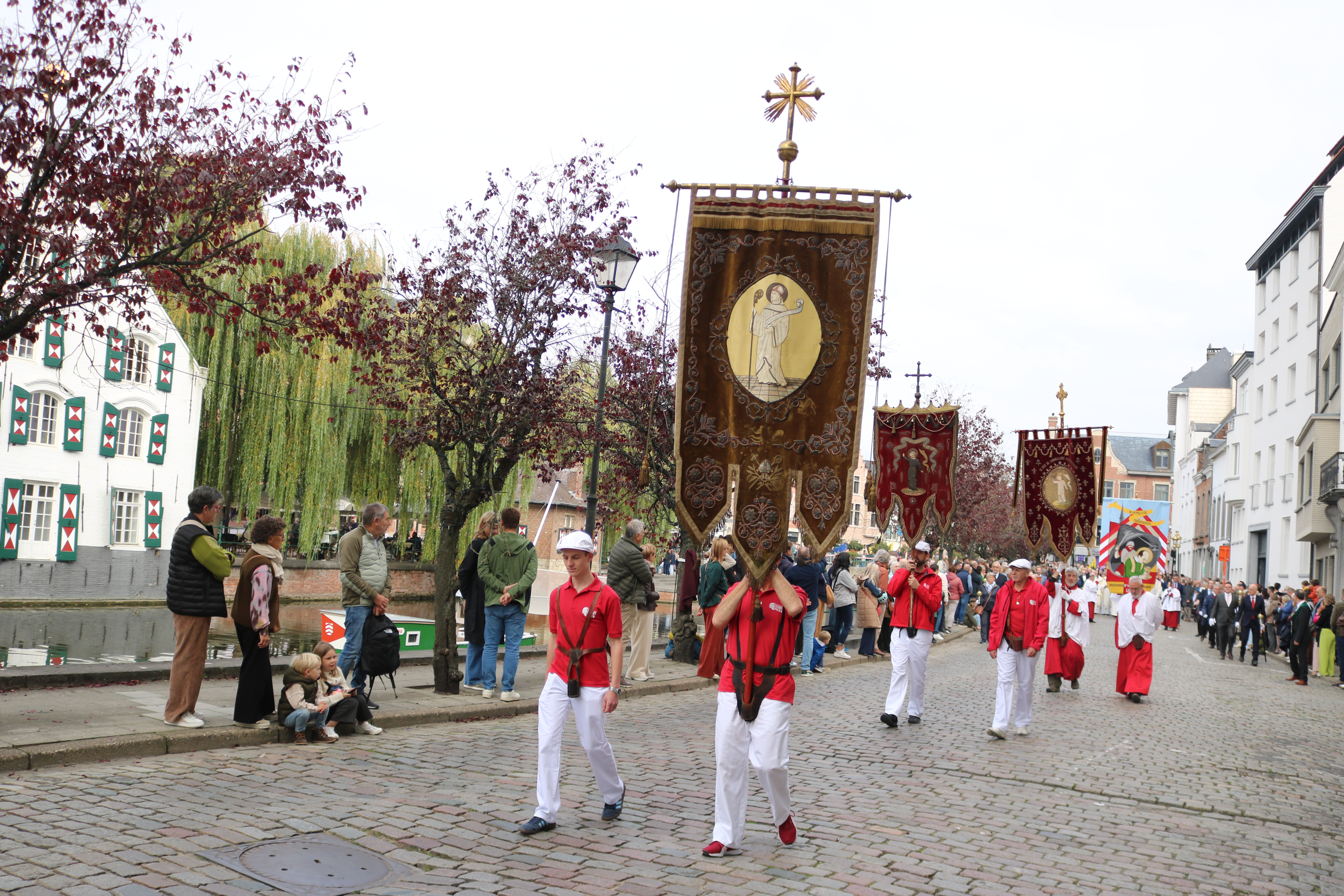 Na de eucharistieviering in de Heilig Kruiskerk op het Renaat Veremansplein omwille van de restauratiewerkzaamheden aan de Sint-Gummaruskerk kon de indrukwekkende processie stipt om 11.30 uur vertrekken vanaf het Kardinaal Mercierplein.