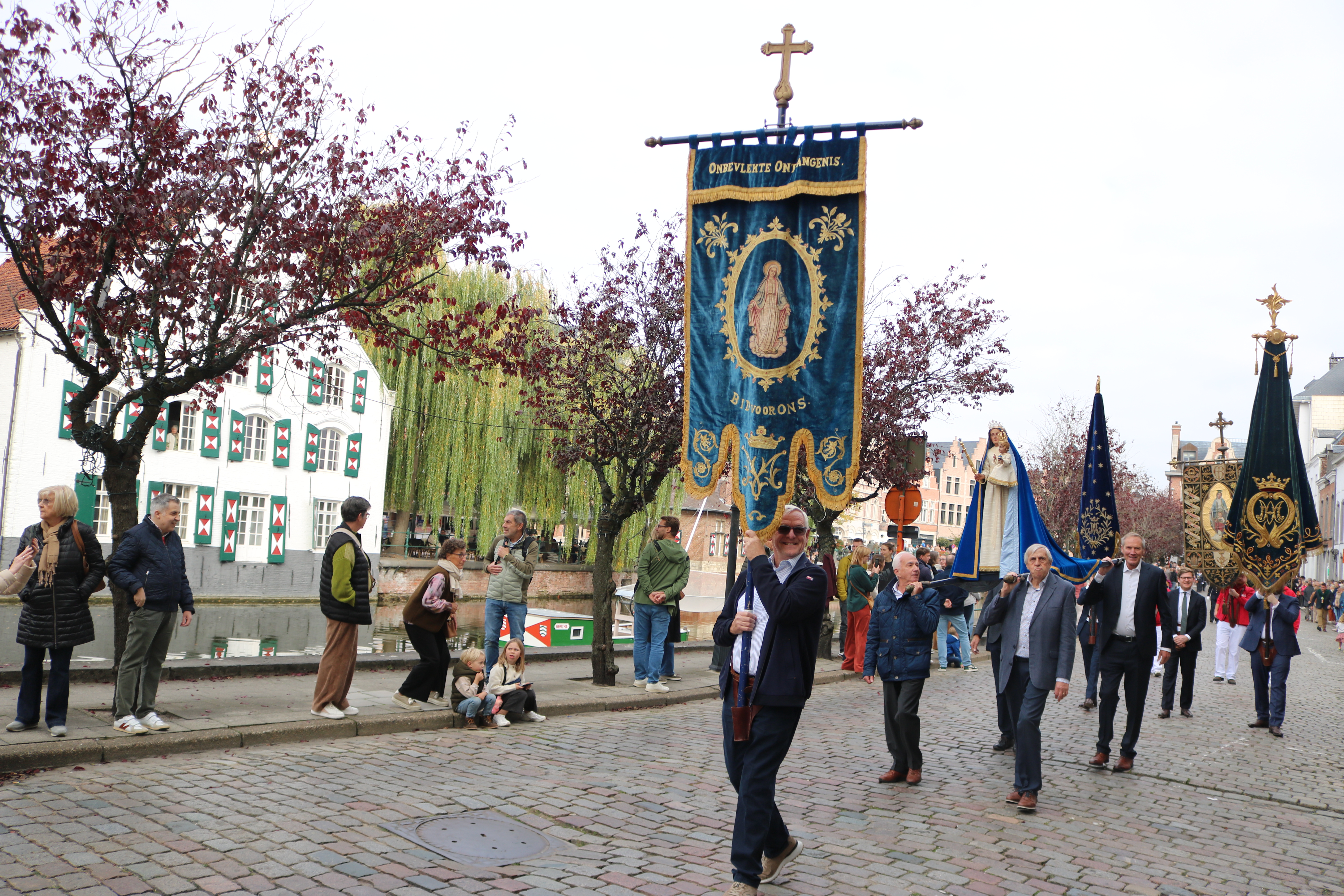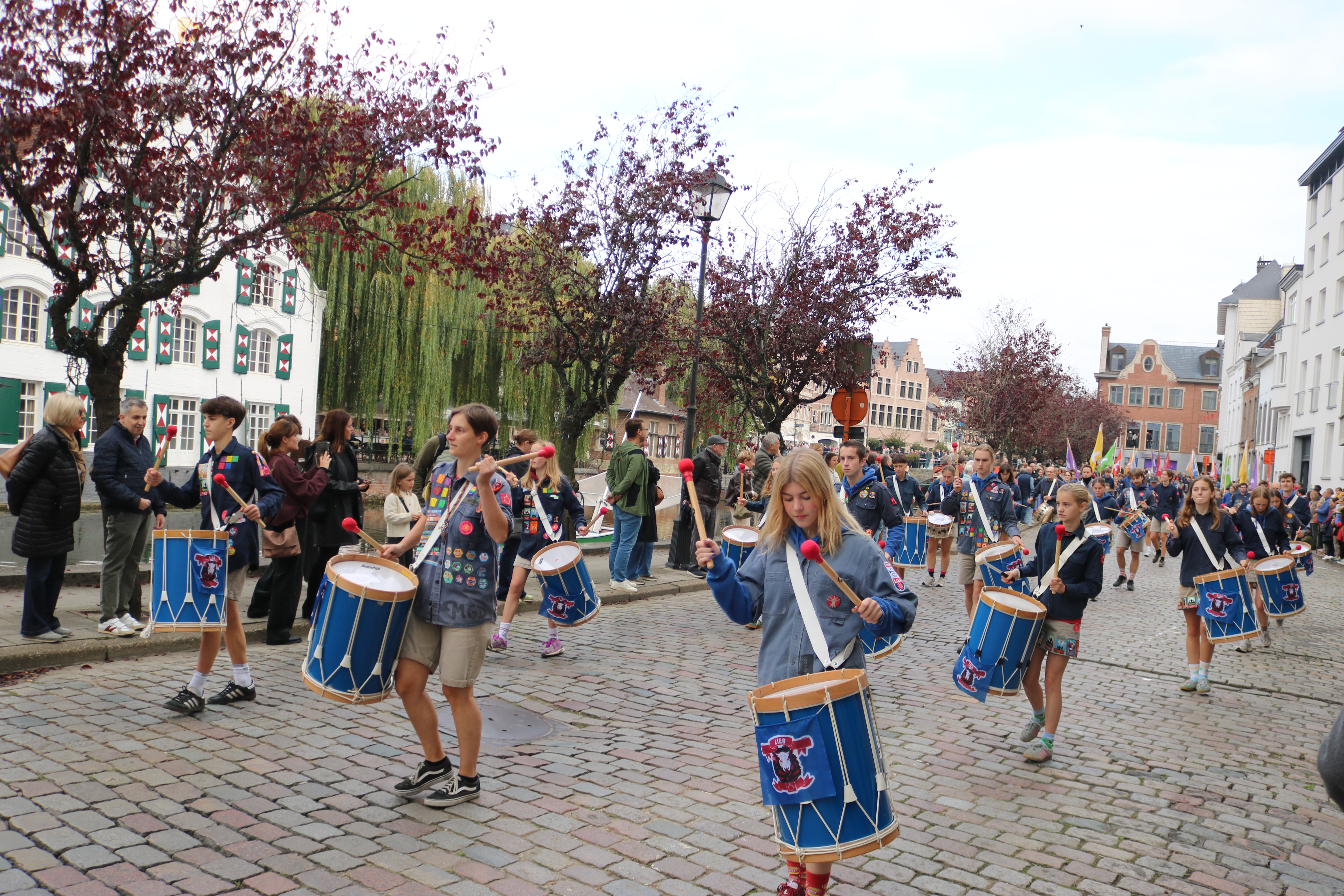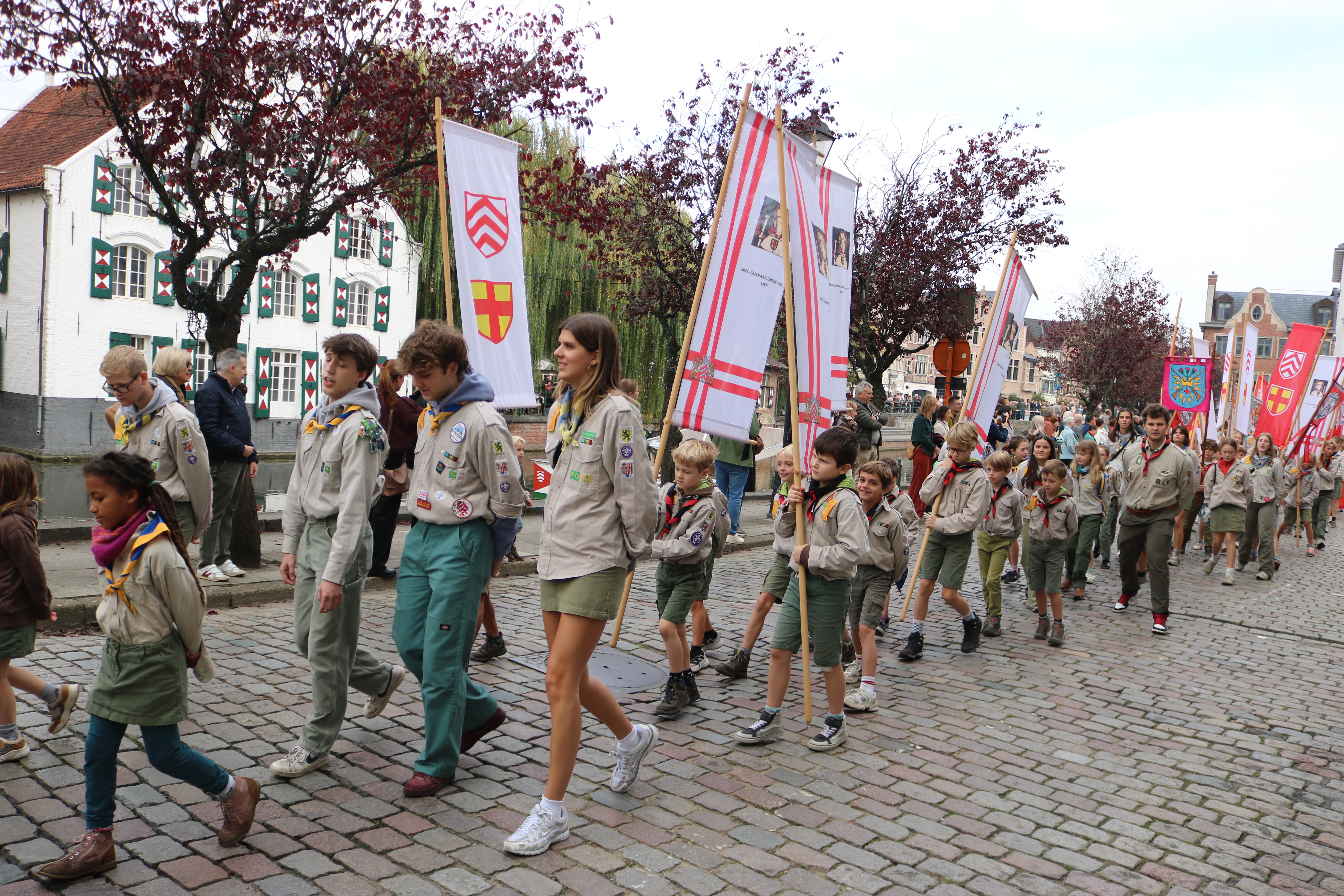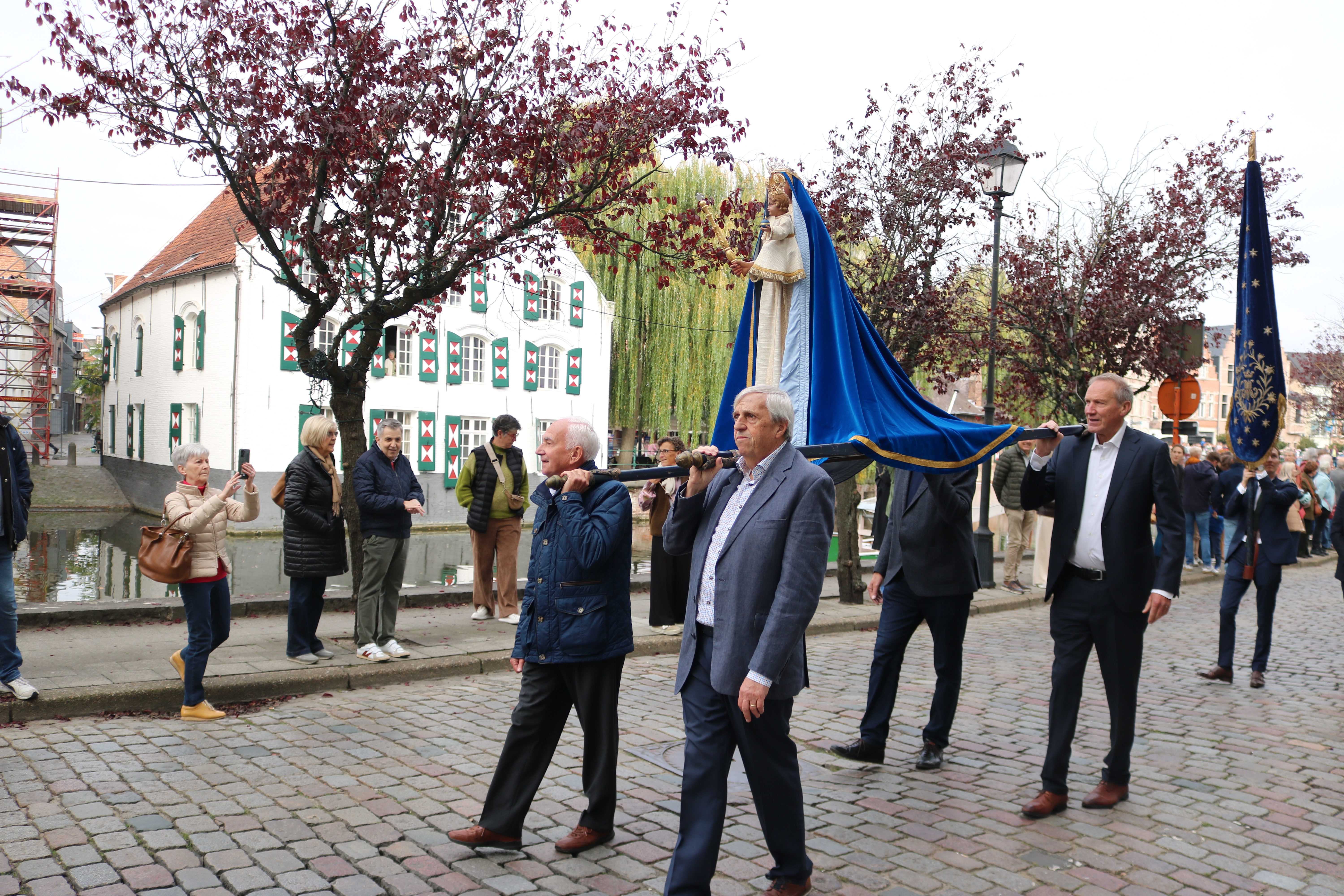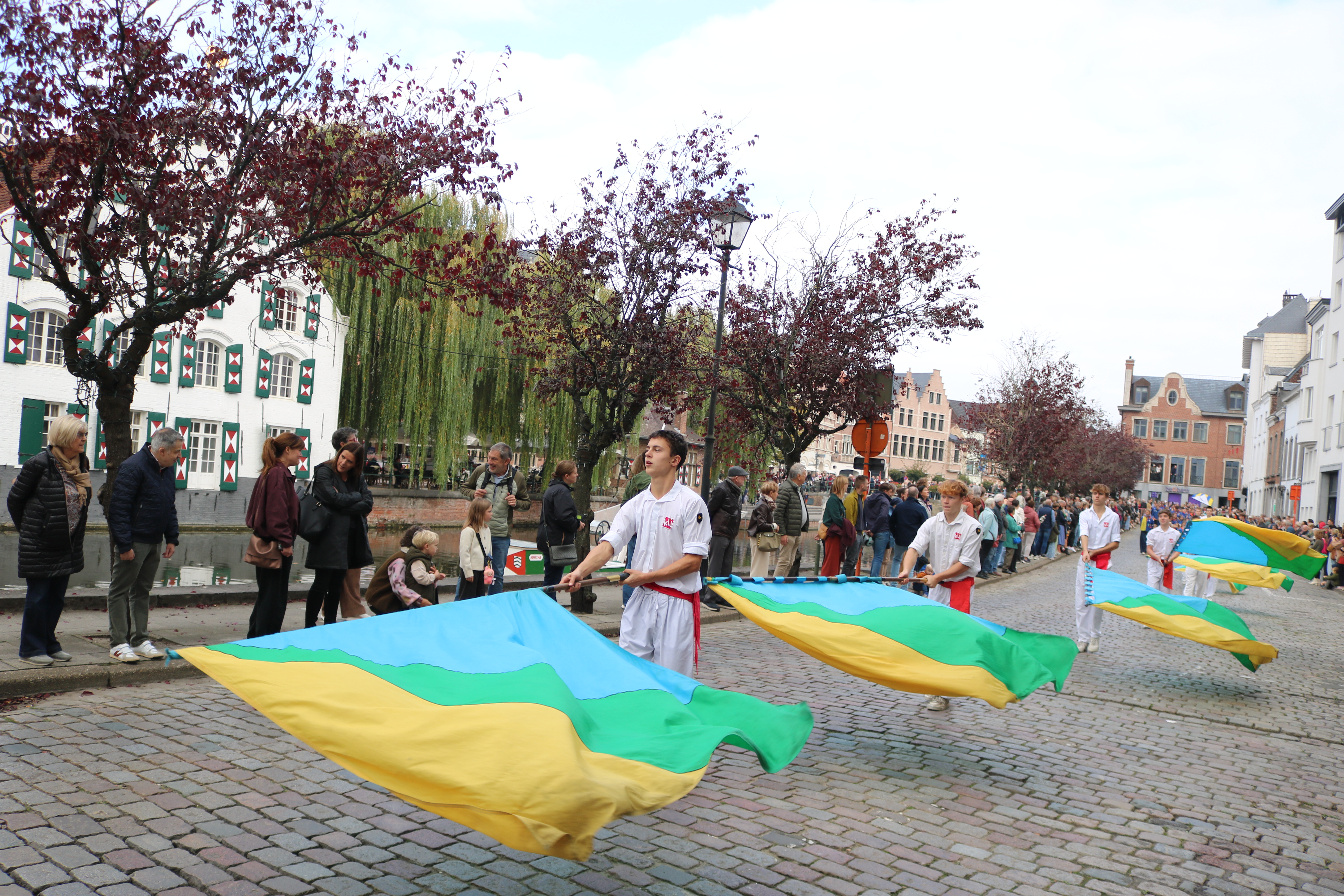 Na de eucharistieviering in de Heilig Kruiskerk op het Renaat Veremansplein omwille van de restauratiewerkzaamheden aan de Sint-Gummaruskerk kon de indrukwekkende processie stipt om 11.30 uur vertrekken vanaf het Kardinaal Mercierplein.