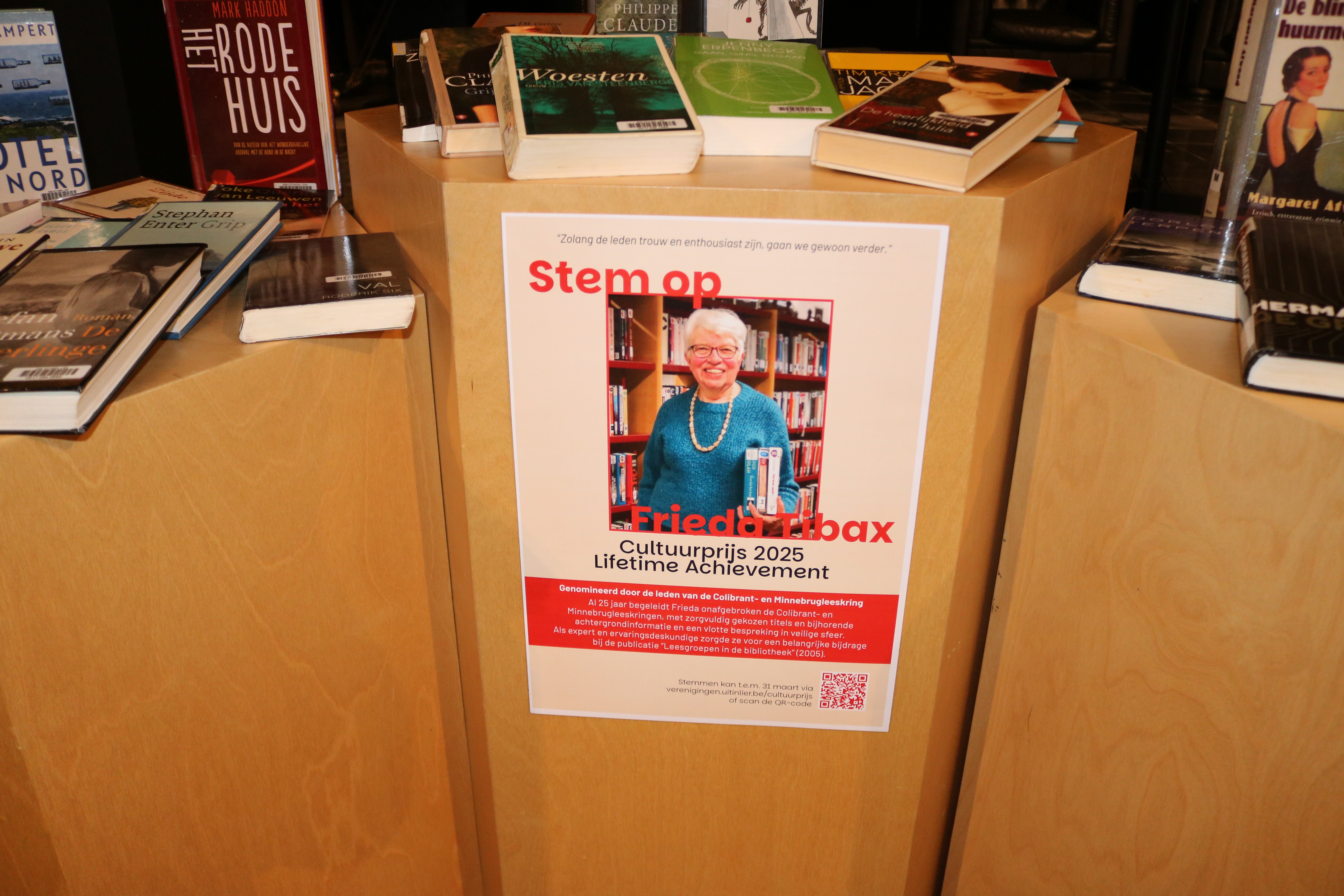 De drijvende kracht achter dit succes is Frieda Tibax. Zij stelt jaarlijks de boekenlijst samen, bereidt uitgebreide achtergrondmappen voor en verzorgt de verslaglegging voor de sociale media van de bibliotheek.